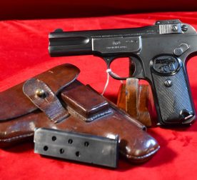 Original price was: $2,195.00.$1,975.00Current price is: $1,975.00.TUE APR 7, ULTRA RARE 1940 NAZI OCCUPATION WaA613 ACCEPTED DUTCH PREWAR CONTRACT FN 1922 PISTOL, RARE .380 CALIBER, TYPE B VARIANT, MINT CRISP!
