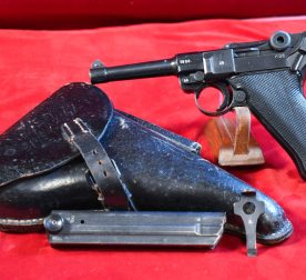 Original price was: $3,500.00.$2,500.00Current price is: $2,500.00.FRI DEC 12, GERMAN WWII, MAUSER byf41 P.08 BLACK WIDOW LUGER, FULL RIG WITH RARE PIGSKIN HOLSTER, ALL YOU NEED IN A NAZI LUGER!