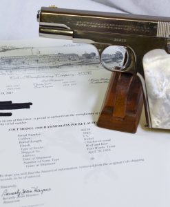 SOLD HISTORIC COLT MODEL 1908 .380 AUTO, FACTORY NICKEL FINISH, “THE QUINTESSENTIAL GANGSTER PISTOL” SOLD BY “THE GANGSTER’S GUN DEALER”, WOLF & KLAR OF FT WORTH TX! END OF SUMMER SALE!