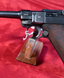 In 97% mint crisp condition, we have a rarely seen Post WWII Austrian military marked P.08 reworked/rebuilt Luger pistol.  Very