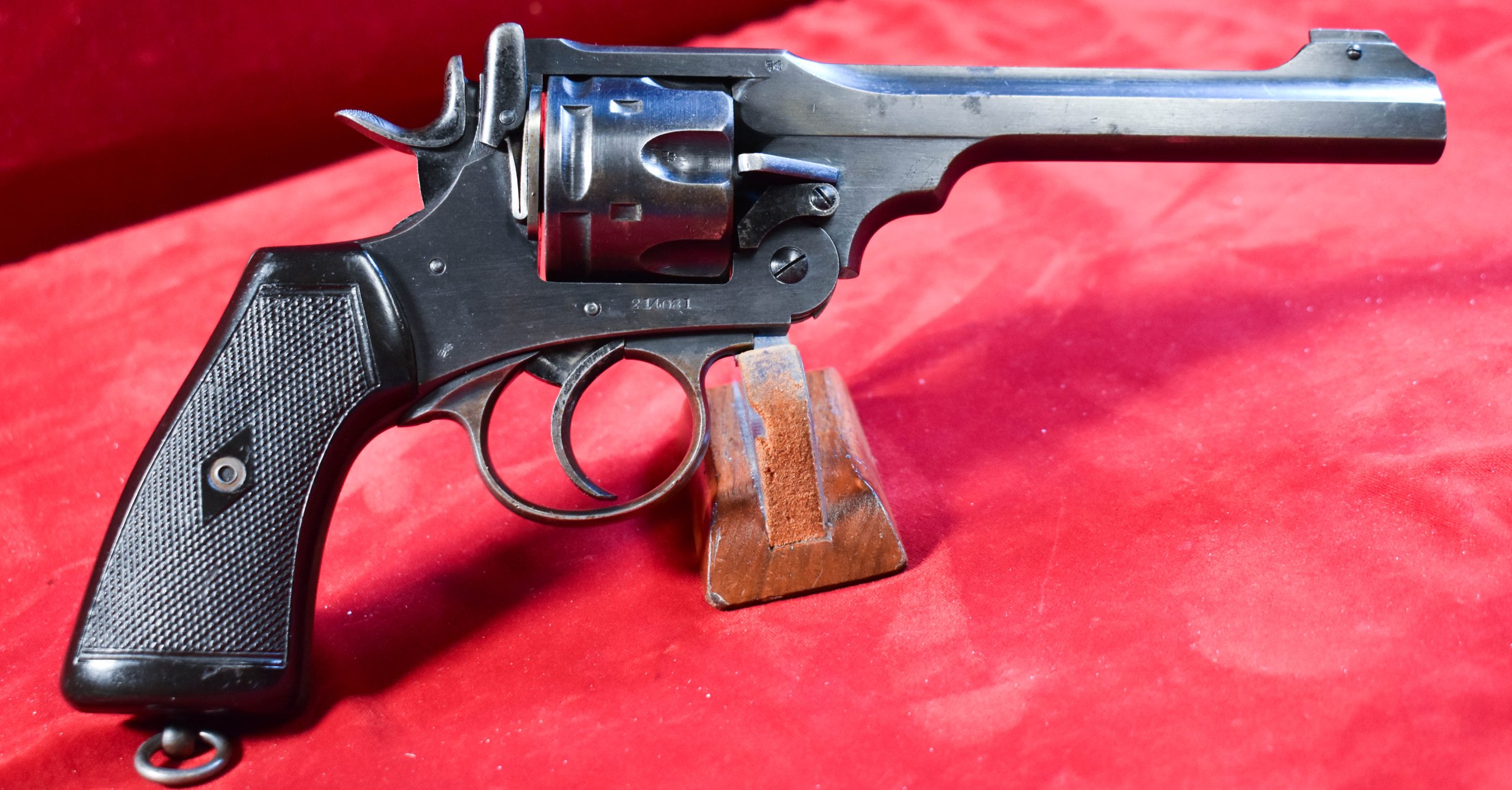 MON FEB 2, EXTREMELY RARE BRITISH OFFICER PURCHASED 1915 COMMERCIAL BRITISH WWI WEBLEY MARK VI SERVICE REVOLVER, IN ORIGINAL .455 WEBLEY CALIBER, YOUR BEST FRIEND IN THE TRENCH!