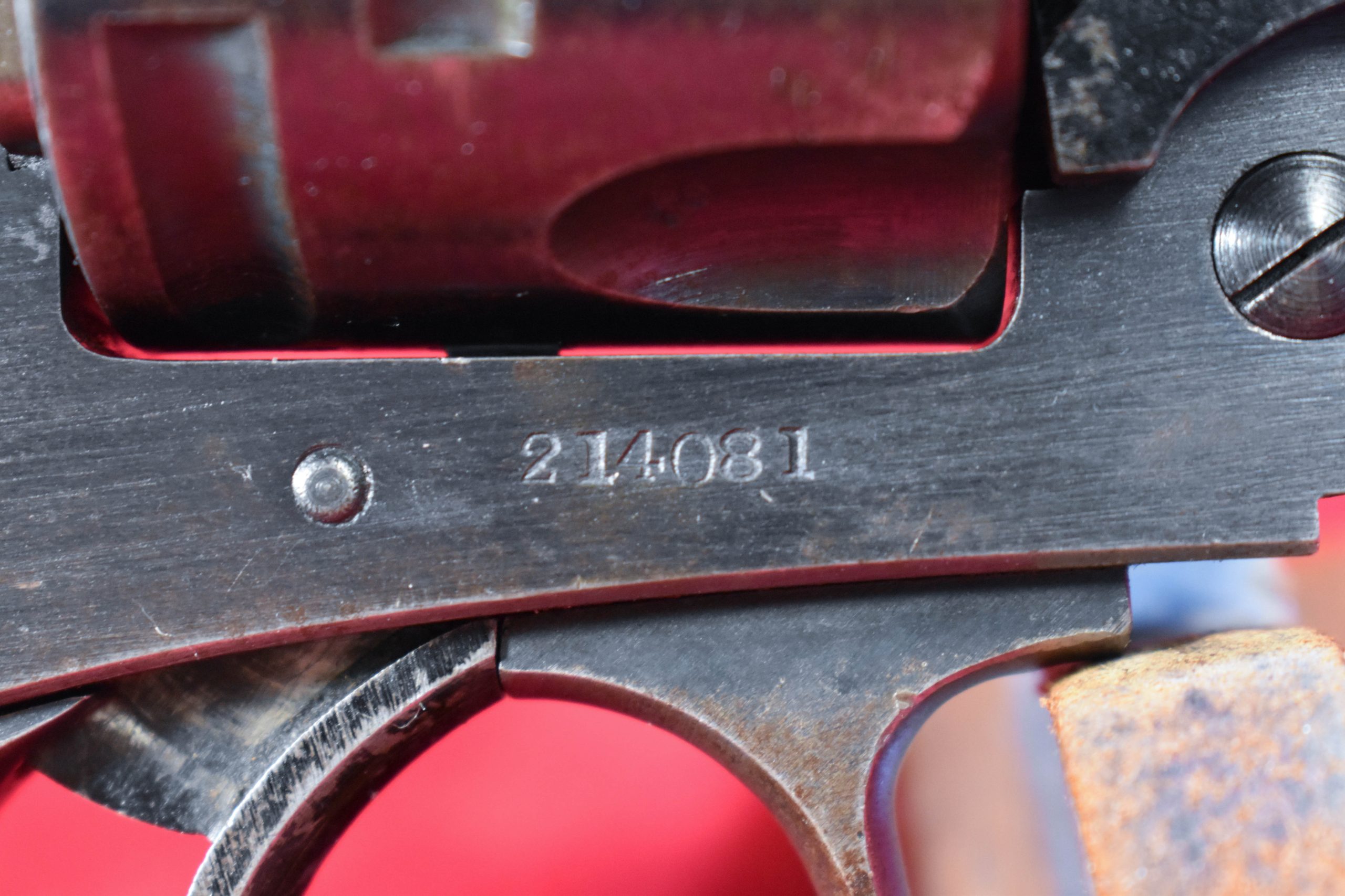 These revolvers are very hard to find still in the original .455 Webley caliber as most had the cylinders shaved down for 45 acp when they were brought into this country which kills the value. This is the most Iconic handgun the British ever made and it’s held in great awe and affection by all! This is all you could want in a WWI Webley.