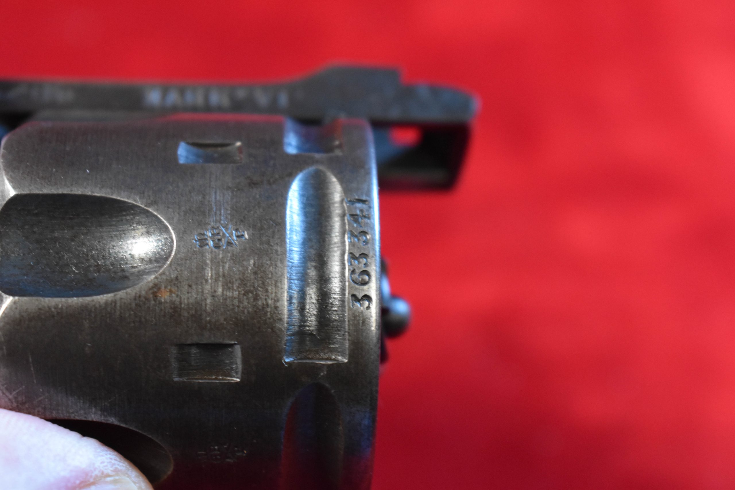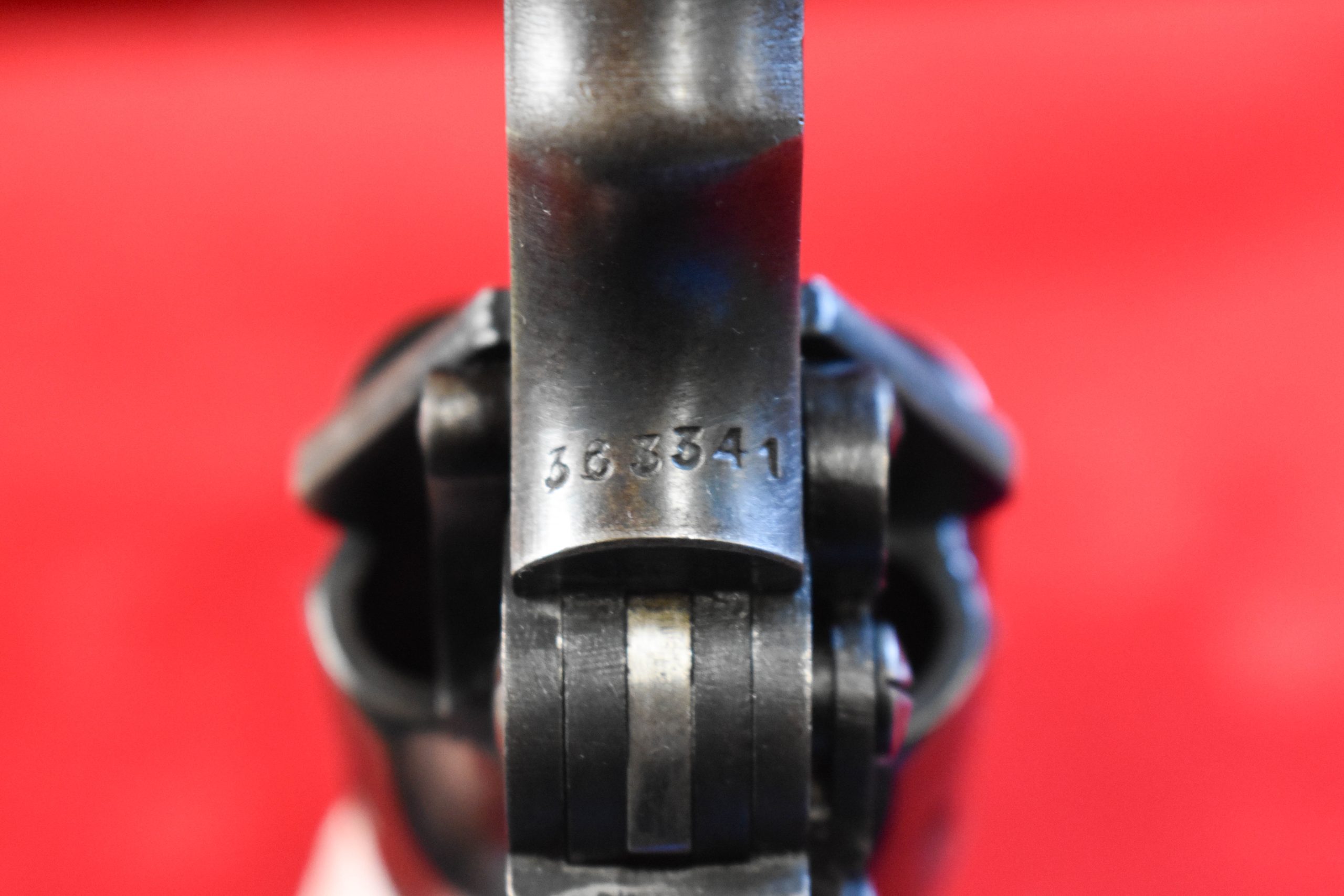 These revolvers are very hard to find still in the original .455 Webley caliber as most had the cylinders shaved down for 45 acp when they were brought into this country which kills the collector value. This is the most Iconic handgun the British ever made and its held in great awe and affection by all! In the office we call this the “Lawrence of Arabia Special”. This is all you could want in a WWI Webley.