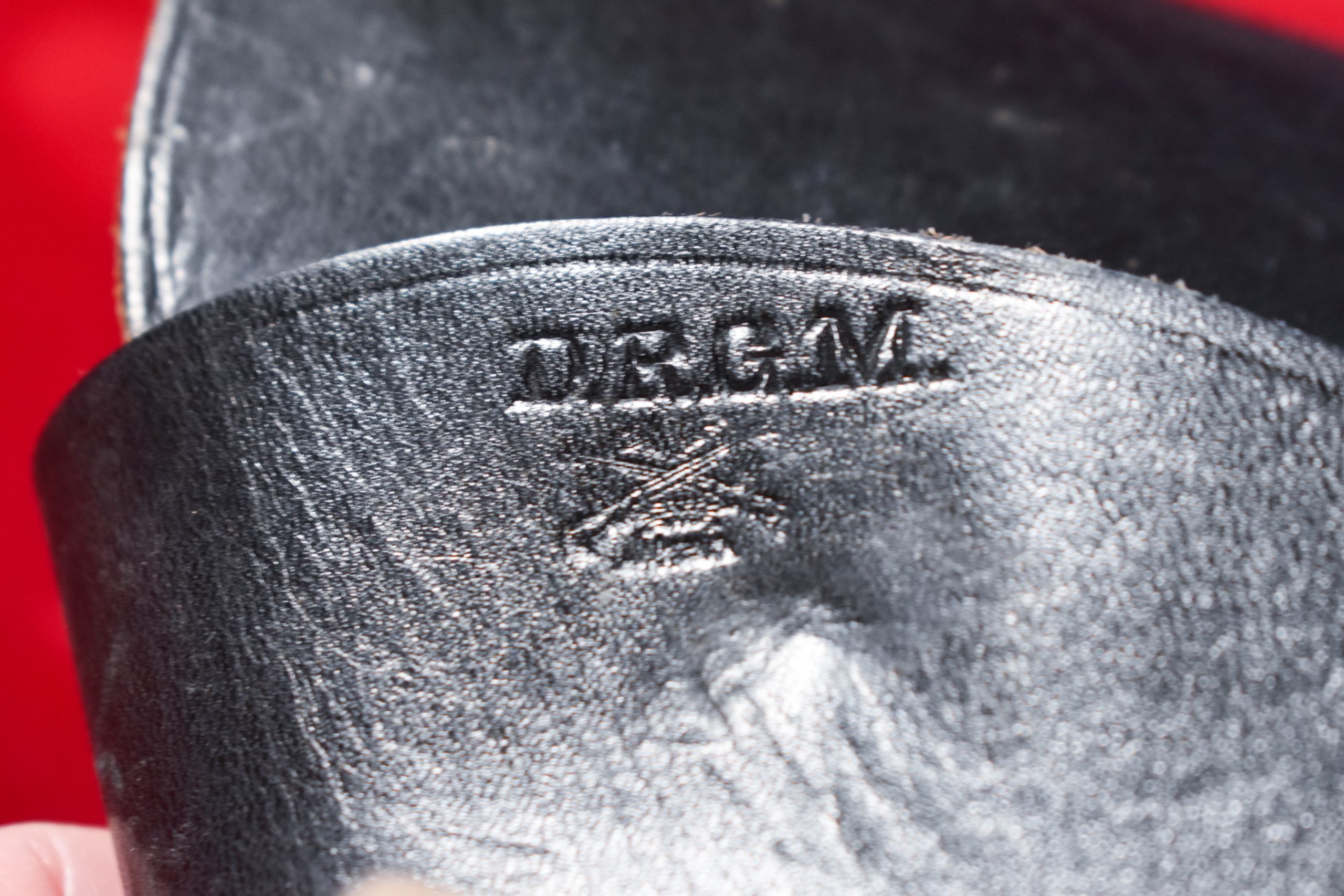 This is a minty, scarce variation Walther PPK ‘leading edge” mag pouch black holster. Correct holster for the RHSA/SS issued Walther PPK pistol…the interior leather has an original Walther PPK ink stamp and very clean leather. Exterior leather has a few minor wrinkles, but no major or notable wear. All original stitching is tight and in tact. AKAH stamped under the closure strap. All original!!!