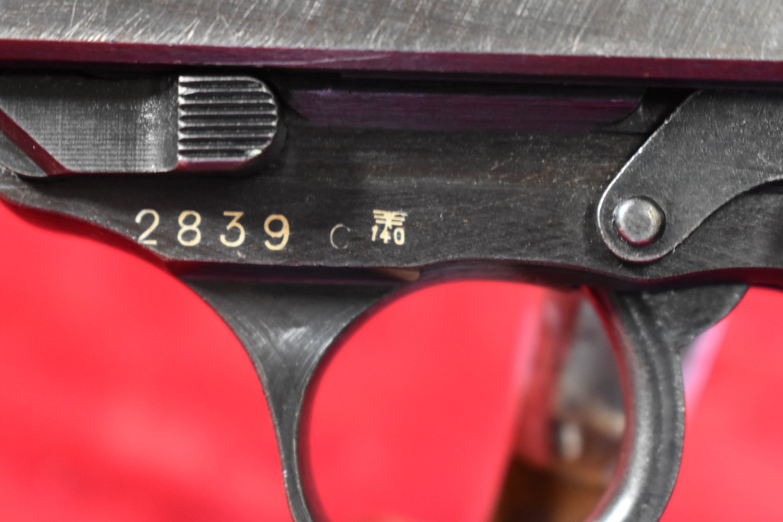 In 96%+ very sharp condition we have an end of war Occupied Walther Factory assembled C Block ac45 P.38 Pistol. This is the known end of the war variation that was assembled for G.I.’s out of mismatched parts. These pistols are highly desirable as a bookend to a wartime P.38 collection. This is a somewhat more desirable example as it was assembled with an FN made frame.