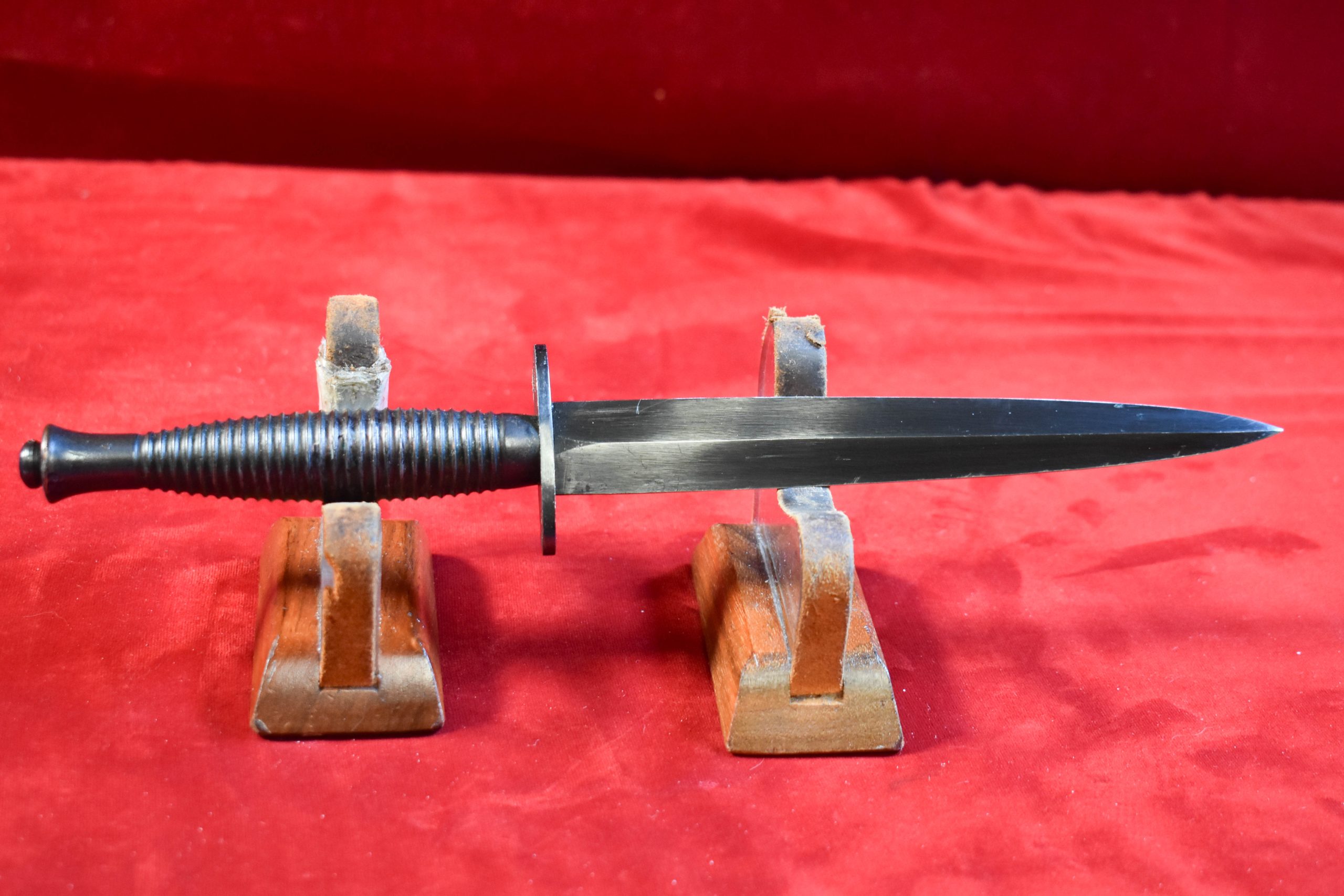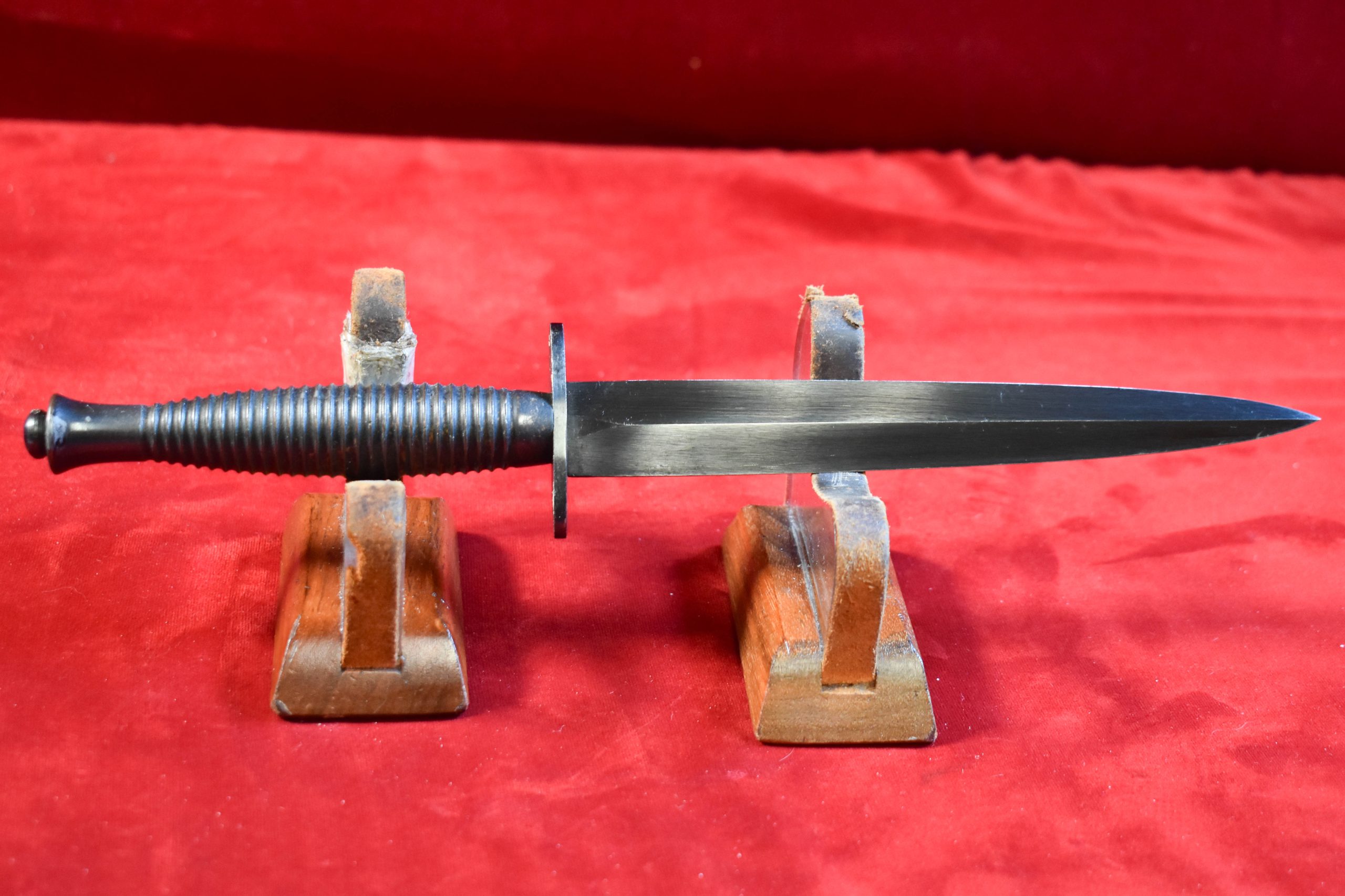 ORIGINAL BRITISH WWII 1943 3rd PATTERN FAIRBAIRN SYKES COMMANDO KNIFE, BROAD ARROW 2 MARKED, MINT WITH SCABBARD!