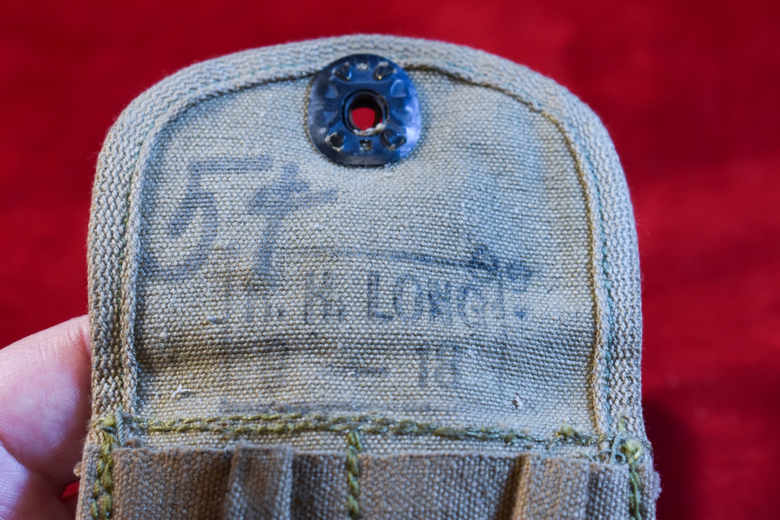 SCARCE US WWI 1918 LONG MARKED TRIPLE HALF MOON CLIP POUCH FOR THE M 1917 REVOVLERS