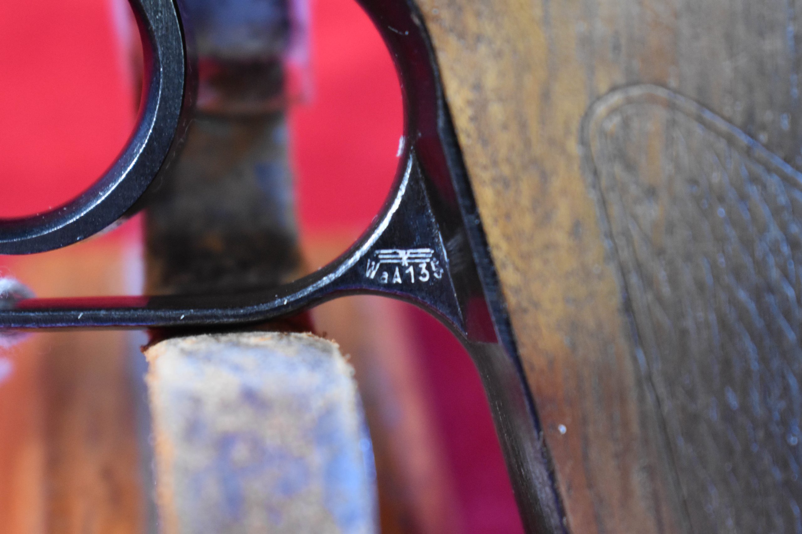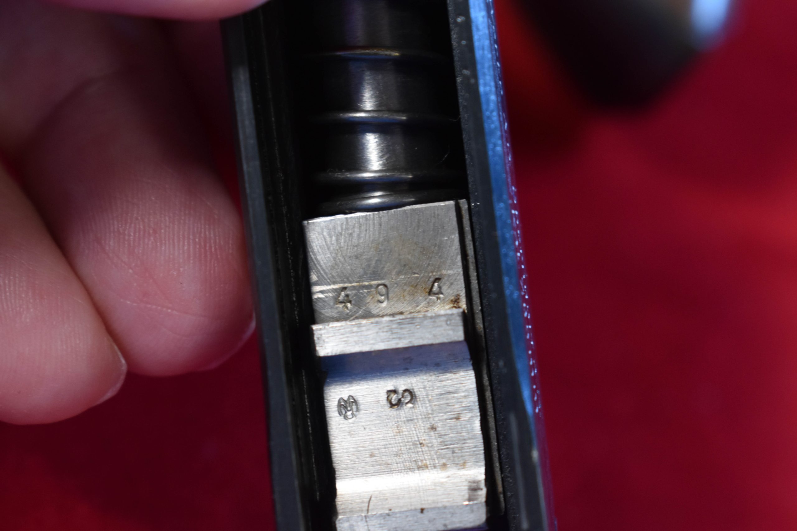 In 95% decent condition, we have a late 1944 production Variation 4 Military Finish 3 Line Slide Marking Eagle/WaA135 inspected Mauser HSc. the pistol is all matching with a very nice bore. This is a nice example that has seen some use but it is still quite nice.