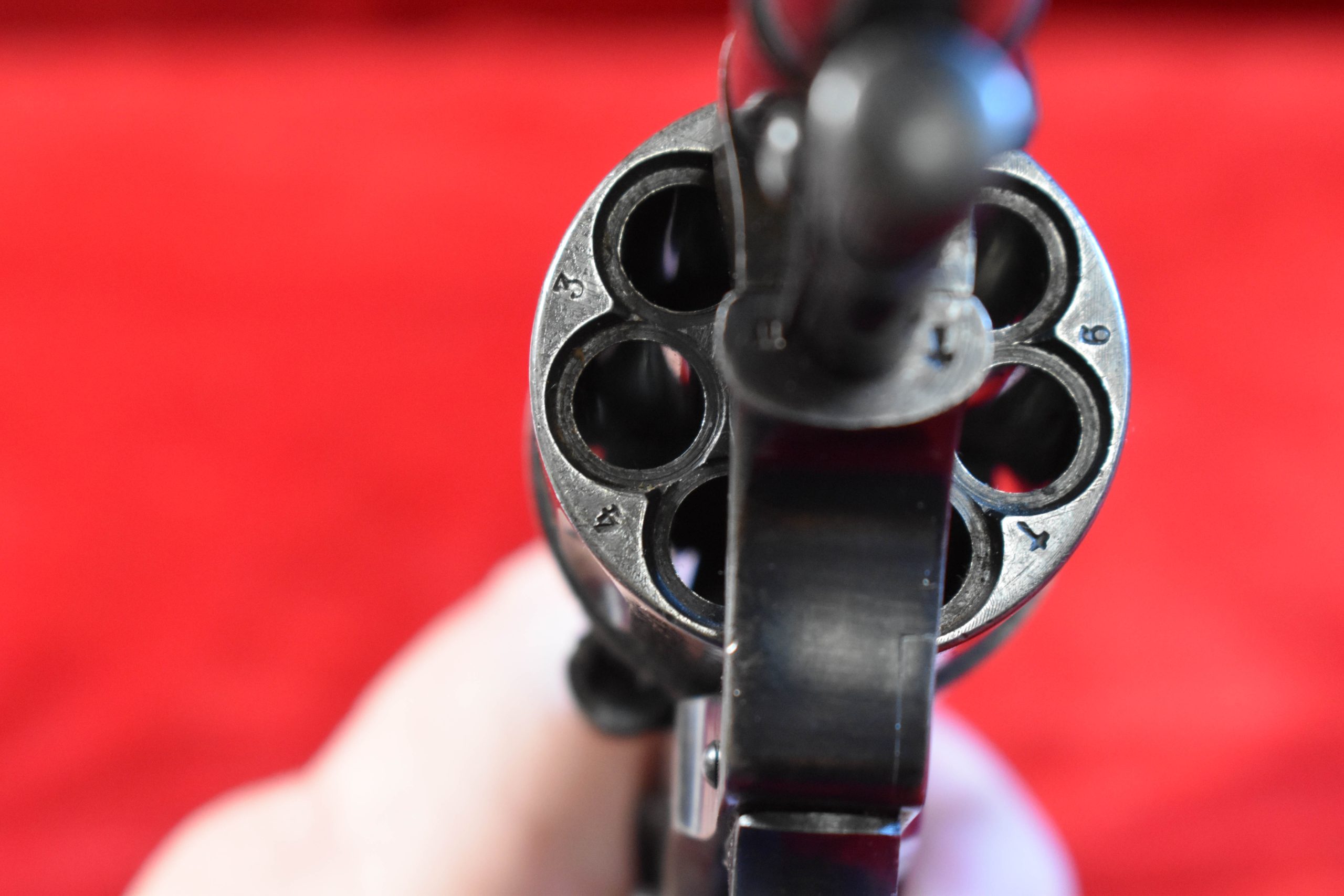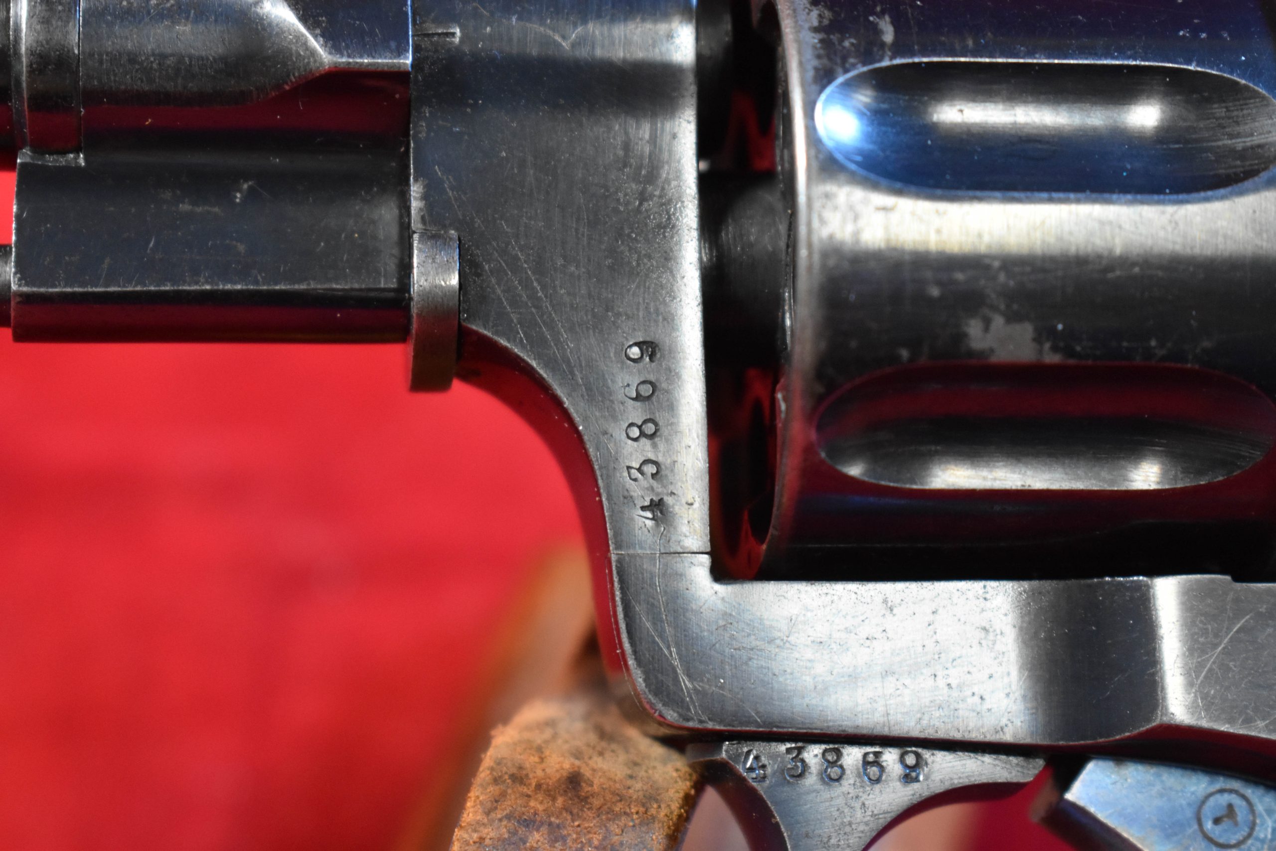 In 94% all original condition, we have a scarce and very desirable Imperial Russian Tula Made 1913 Dated M1895 Single Action Enlisted Model Nagant Service Revolver. This is of course not one of those recent Russian Turd imports, but a likely WW1 or WW2 vet bring back. The bore is surprisingly excellent and it is all matching except including the cylinder. These revolvers are impossible to locate this early and nice, you just never see them.