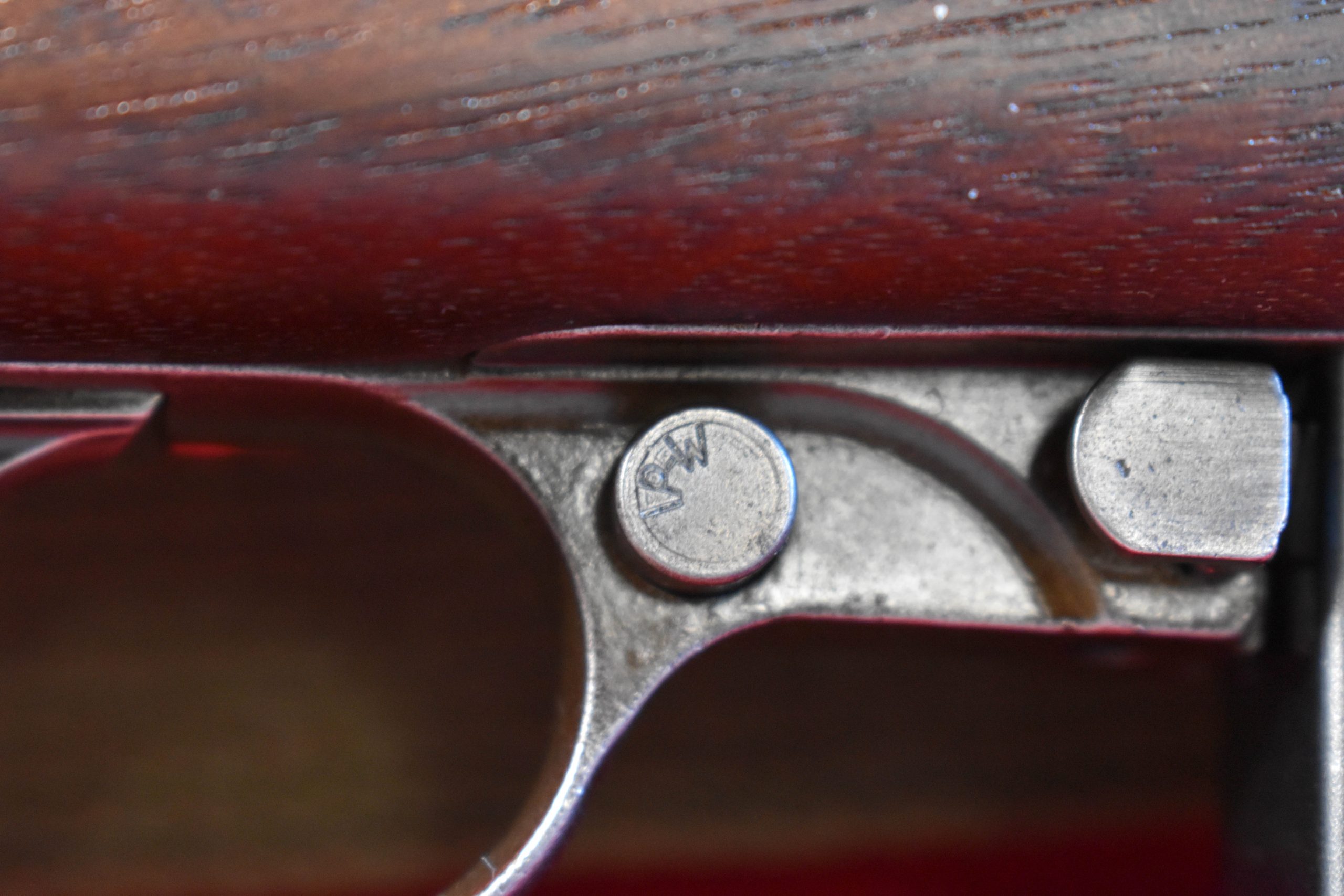 In excellent condition we have an example of an Irwin Pederson made M1 Carbine. As you probably know, Irwin Pederson never actually completely assembled any carbines before their contract was yanked. Correct original guns which are just a handful were assembled at Saginaw. This example has IP and Saginaw parts, most importantly the stock is a very early IP stock and the buttplate is also IP marked. So this is quite rare and desirable especially since this has never been re-parked.