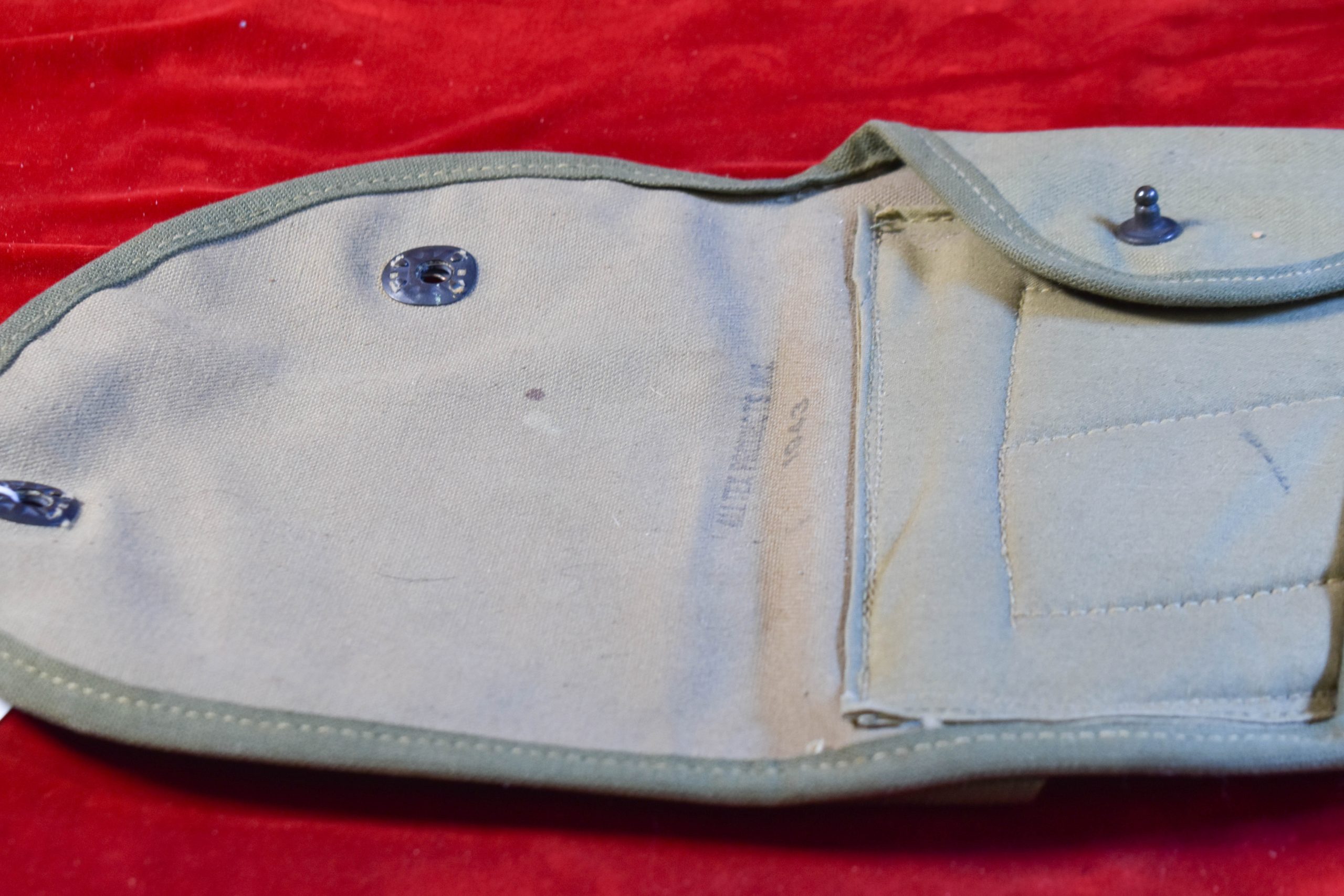 In mint condition we have a rare and very highly sought after, hard to find khaki 1943 dated, Alltex Products made M1A1 Paratrooper Carbine Jump Bag or leg bag. Easily the most faked and reproduced piece of carbine gear…..this is the real McCoy!