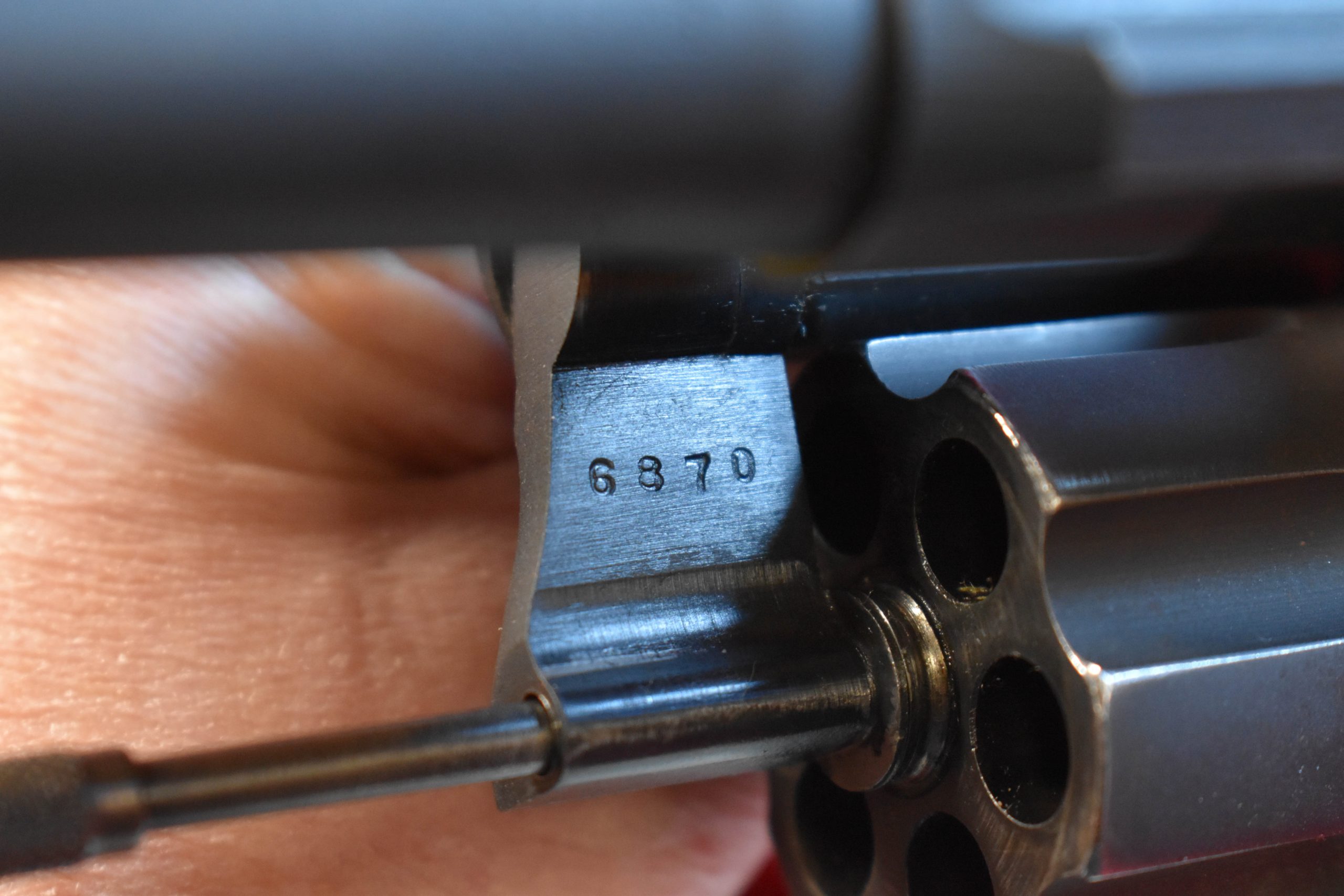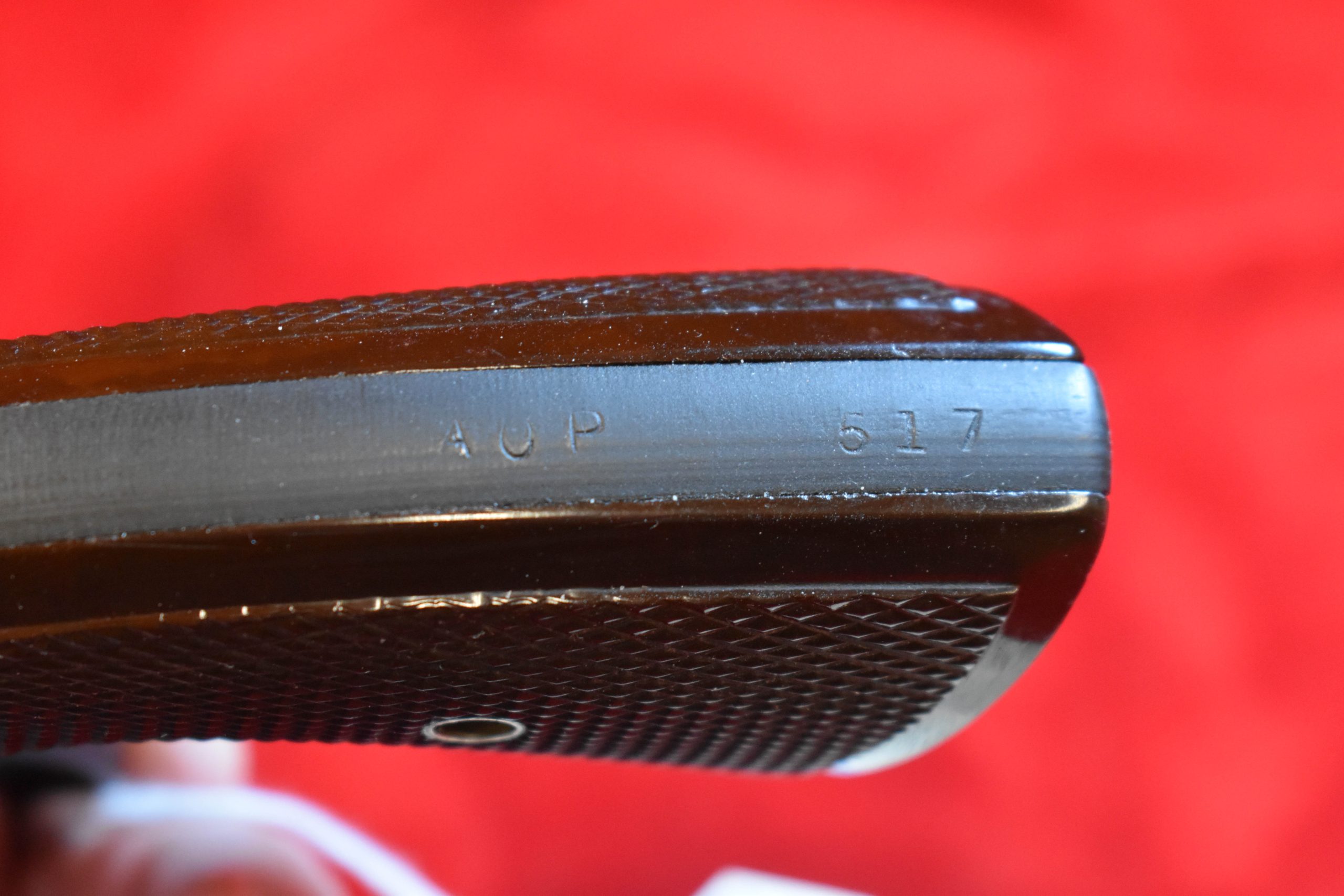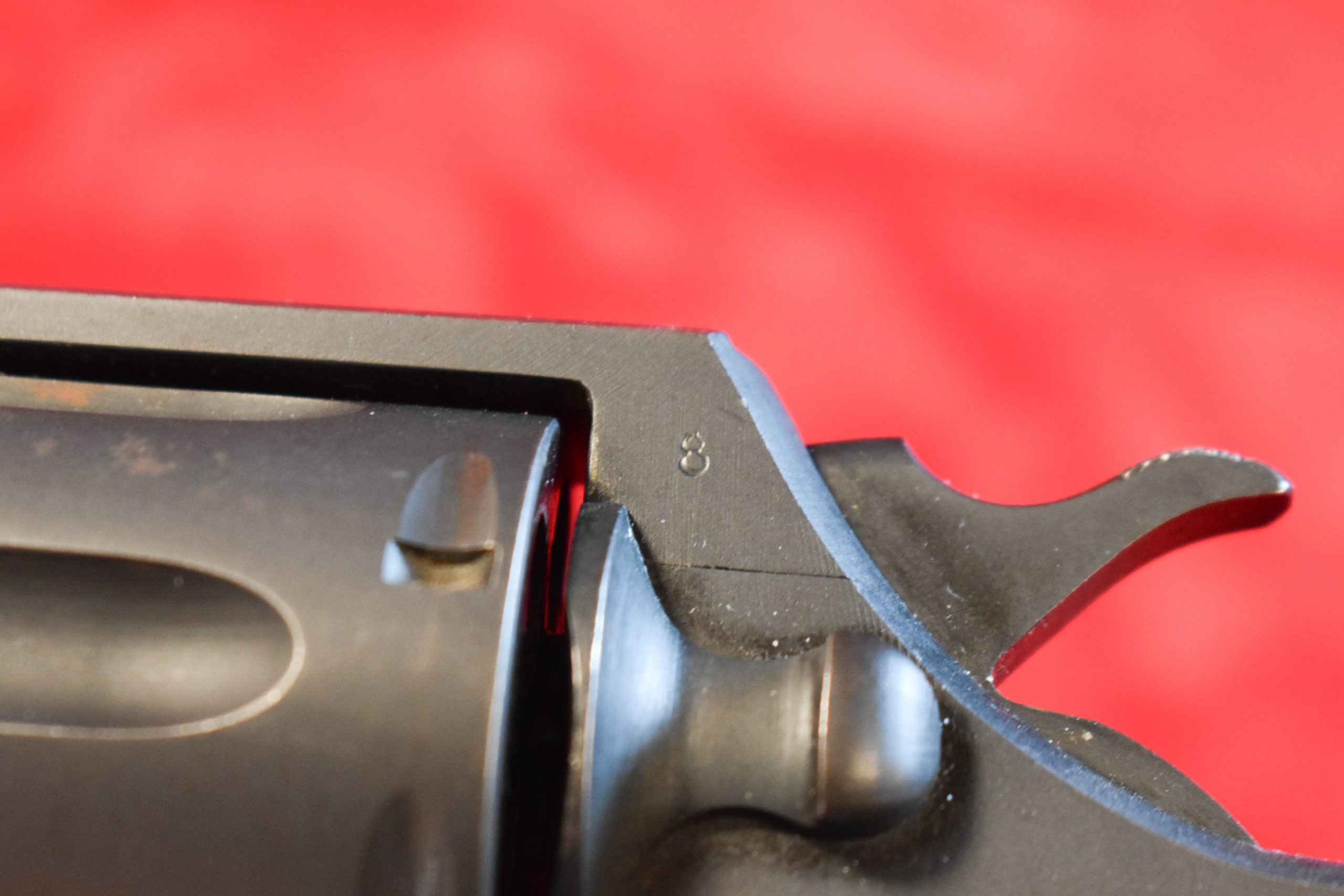 In 98% mint crisp condition, we have a early 1942 production US WWII Issued Colt Commando 4 inch .38 spec. Revolver. This revolver is marked “AOP” this is for the Arkansas Ordnance Plant; there is alsi an example with an identical marking in the Museum at the Springfield Armory. Definitely Military; not civilian issued.