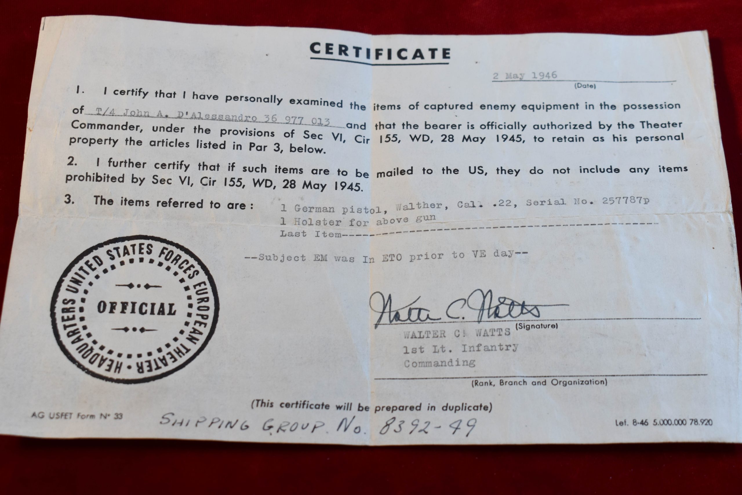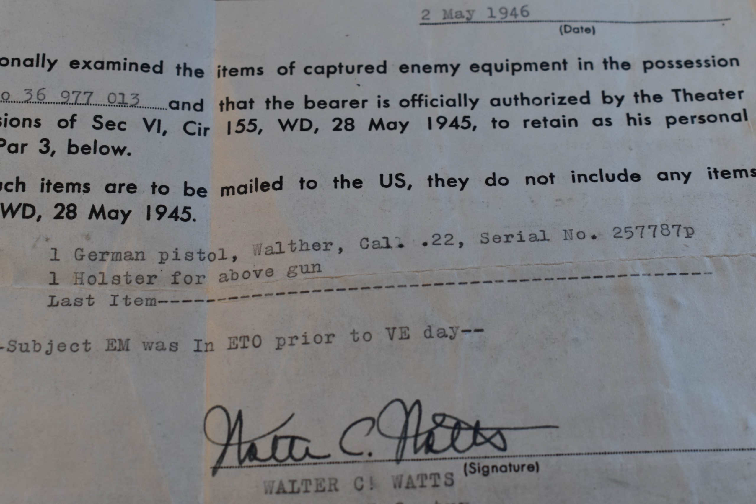 THU JAN 8, OUTSTANDING WAR TROPHY 1942 WALTHER PP PISTOL, .22LR, MINT NEW! WITH A RARE MINT NEW AKAH LEADING EDGE HOLSTER, & THE WAR TROPHY PAPER! ALL MINT STUNNING!