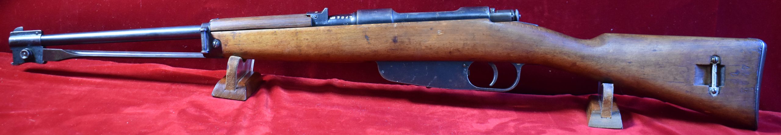 In excellent all matching condition and not import marked, we have a fine example of the scarce Italian Army Modello 38 Carbine….the Special Troops Carbine. this example was made by Gardone Val Trompia in 1940. They were intended for issue to engineers, artillery troops and Caribinieri, among others. This example was produced in 1940 and certainly saw service in the Italian campaign and possibly North Africa. They are rarely seen here in America except in turd condition and import marked, so this is something of a find. Surprisingly, while not expensive, decent original condition Italian Service Rifles are a bit elusive to locate and we rarely get such nice examples in the office.