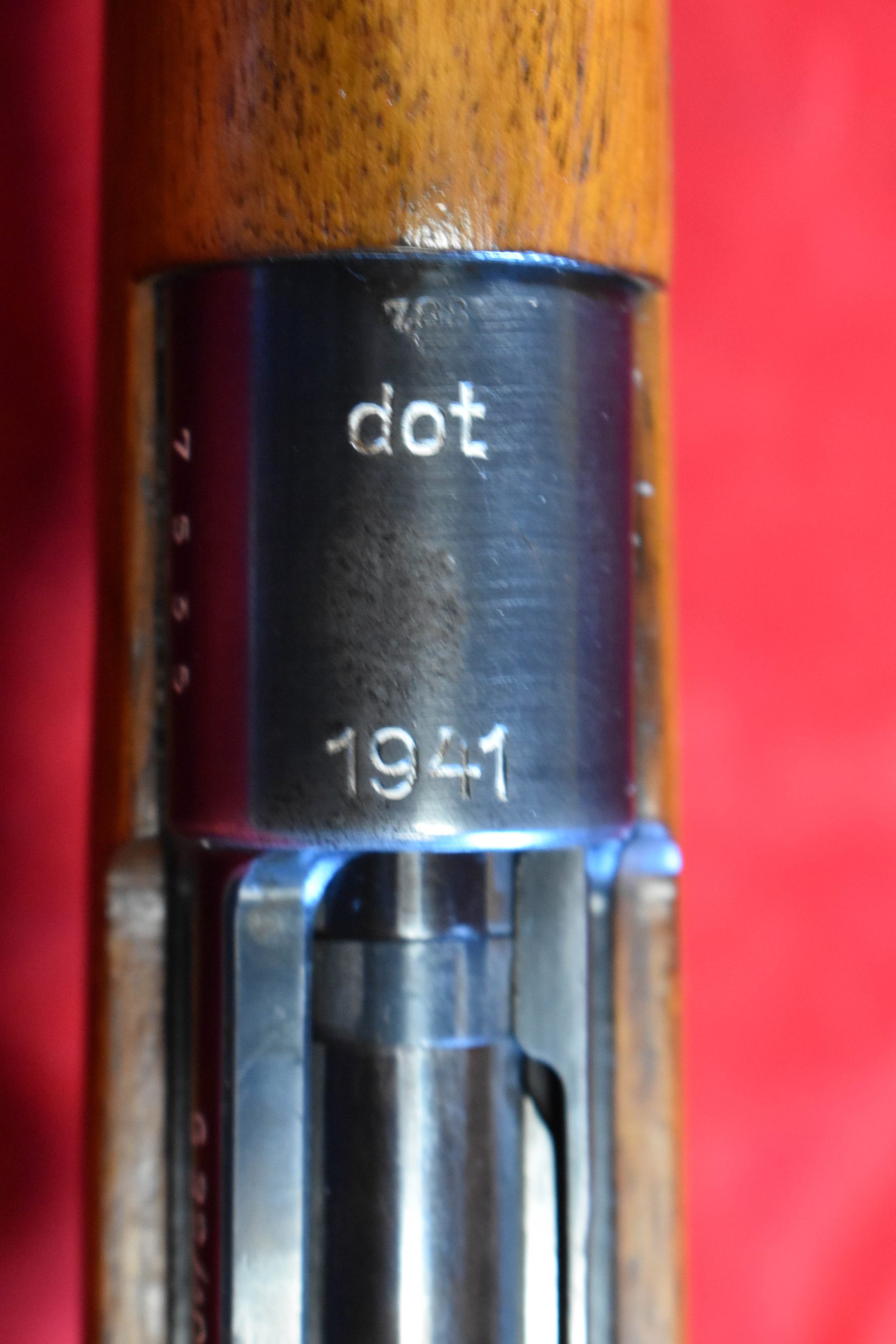 In very sharp condition, we have a top example of an early 1941 production dot 1941 coded G33/40 Mountain Carbine. This rifle is all matching and was a vet bring back. this is an early gun with the solid walnut stock . This is a completely matching rifle and the stock is numbered to the carbine as well as the hand guard. The bore is mint and the blue is exceptional as well. The only issue with this rifle is that the vet who brought it back smoothed out the stock a bit, though the cartouches are still mostly visible.