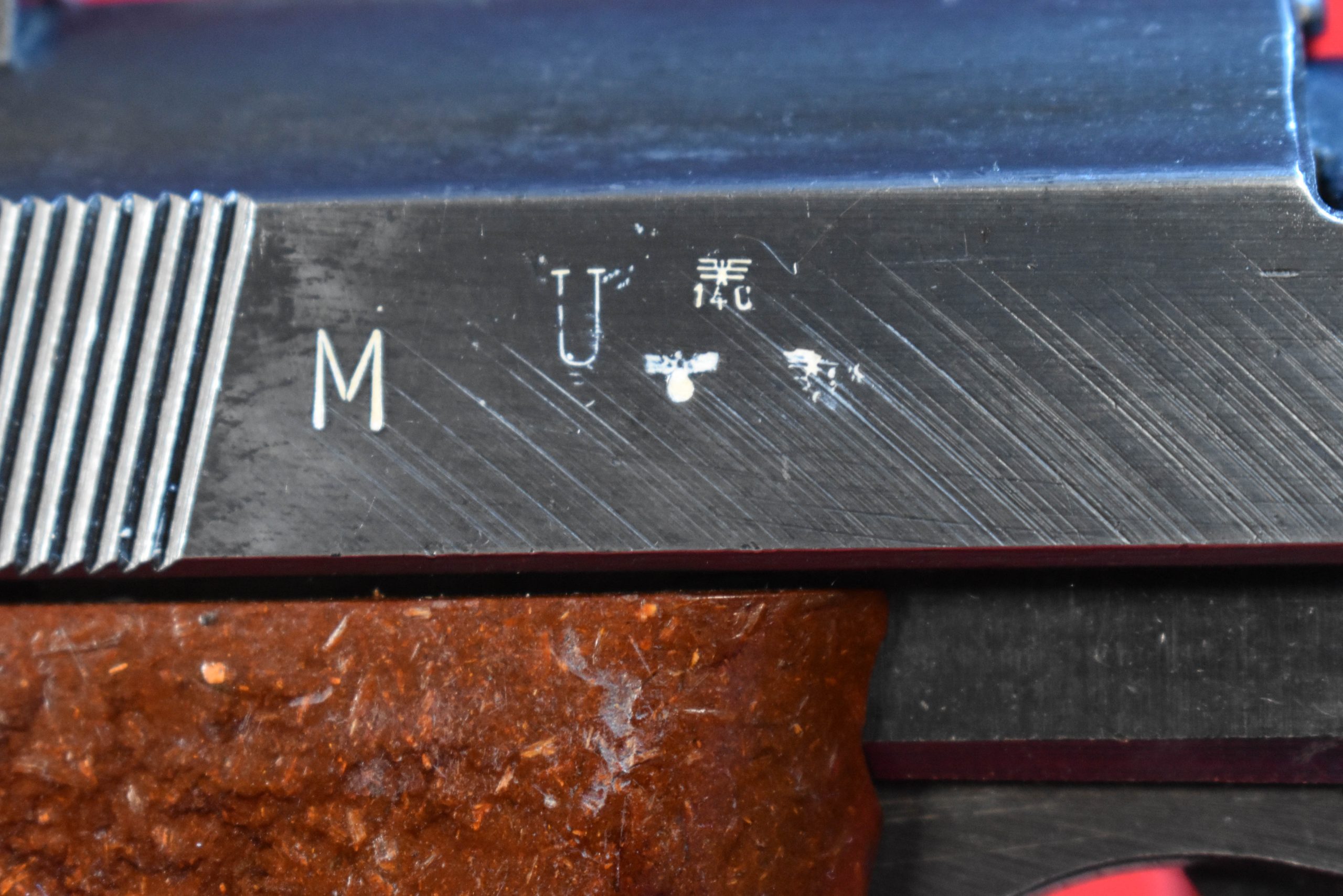 In 98% condition, we have what is considered to be the absolute rarest of the Spreewerke Made P.38 Variants, the FN slide ac44 zero series. This pistol is all matching with a mint bore. This is known as variation 25c on page 275 in the new book “The P.38 Pistol” which has been adopted as our standard Identification reference. There are estimated to have been only 600 of these produced and about 50 are known to still exist. The rarity and desirability of this pistol to serious P.38 collectors cannot be underestimated. We may well never see another so act accordingly.