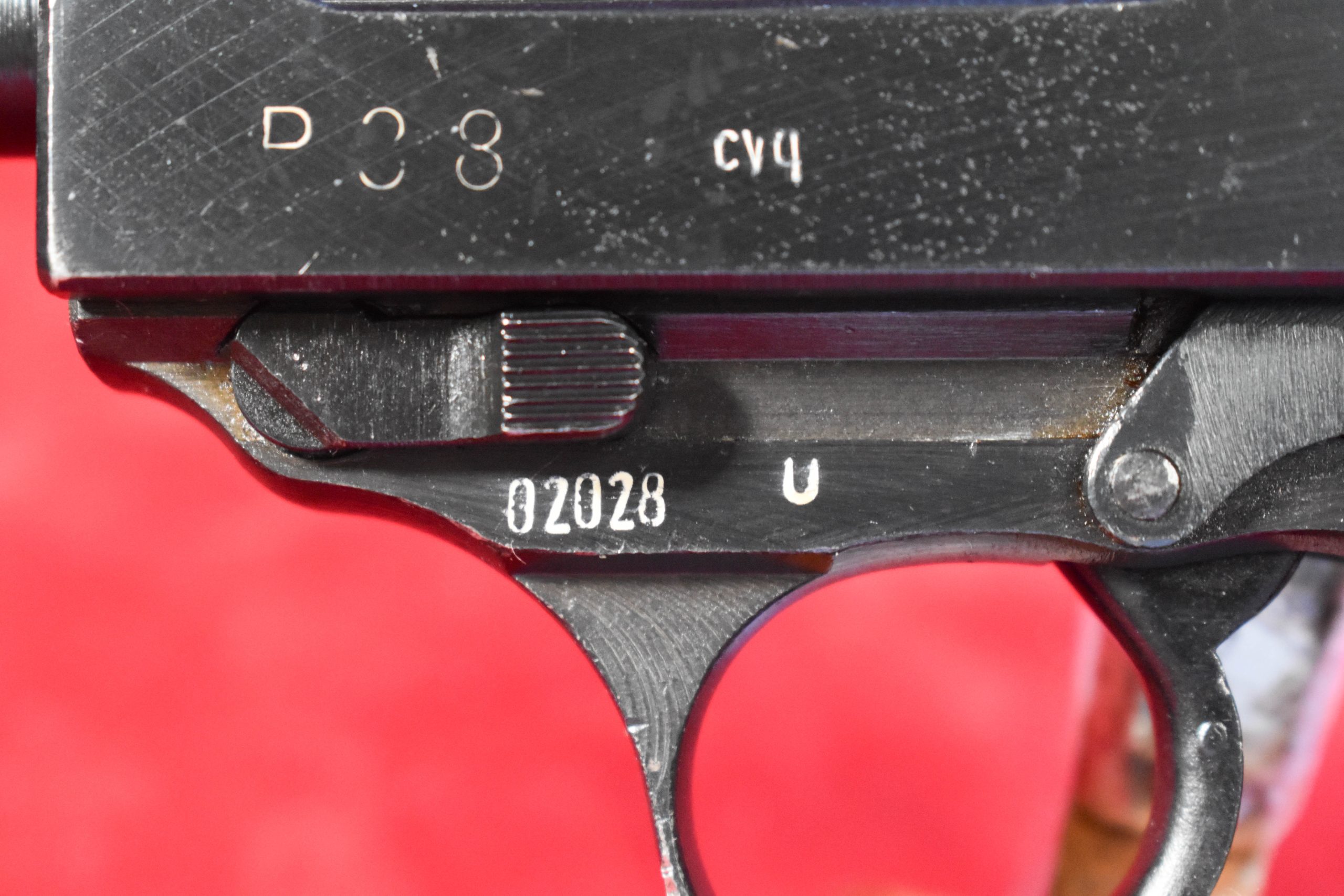 SOLD VERY RARE, VERY LATE WAR ZERO SERIES CYQ CODE SPREEWERK P.38 PISTOL, “U” MARKED FOR REJECT PARTS, MINT CRISP!
