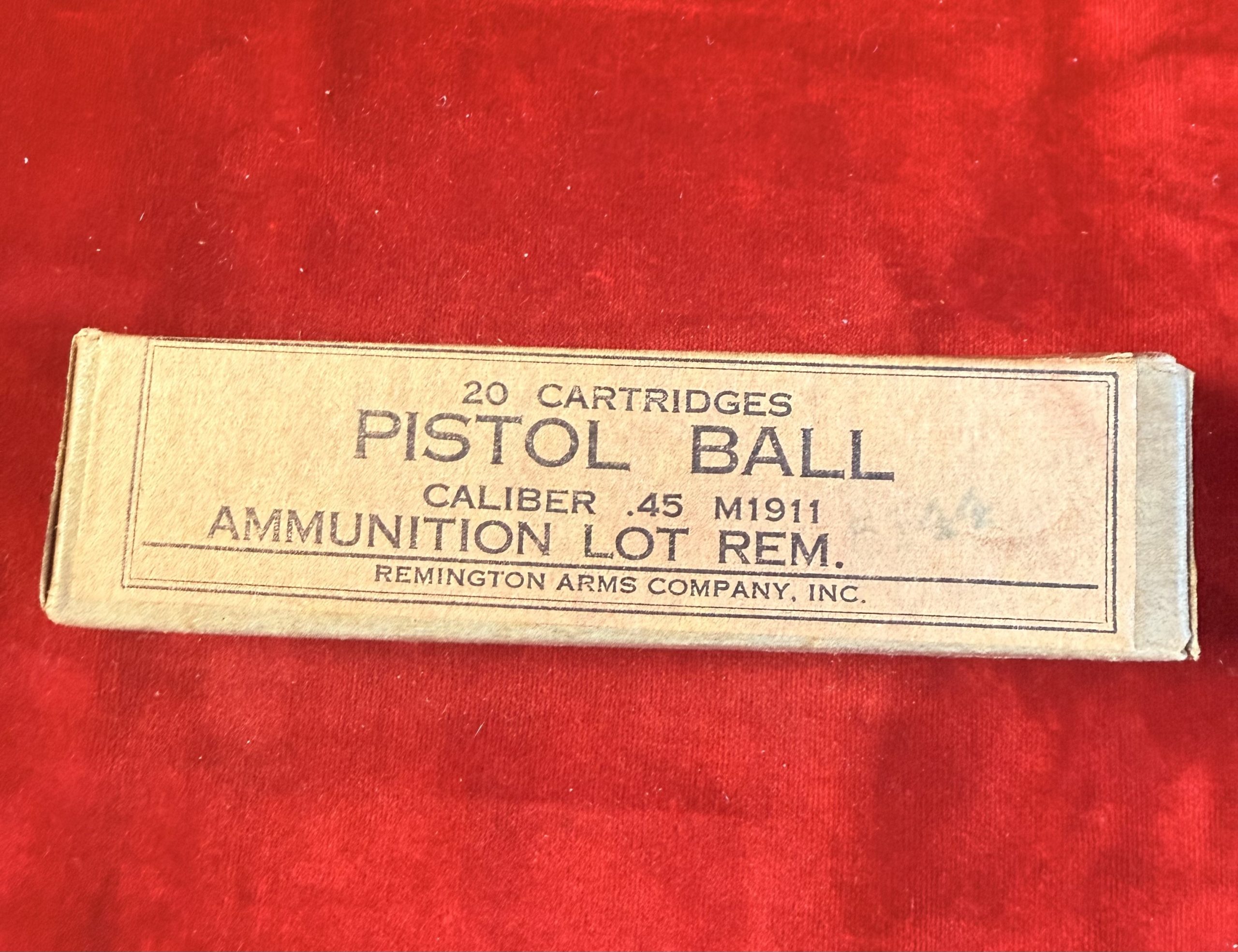 THUR, APRIL 30 ORIGINAL WW2 ERA REMINGTON ARMS COMPANY .45 CALIBER M1911 PISTOL BALL AMMO SEALED!!!