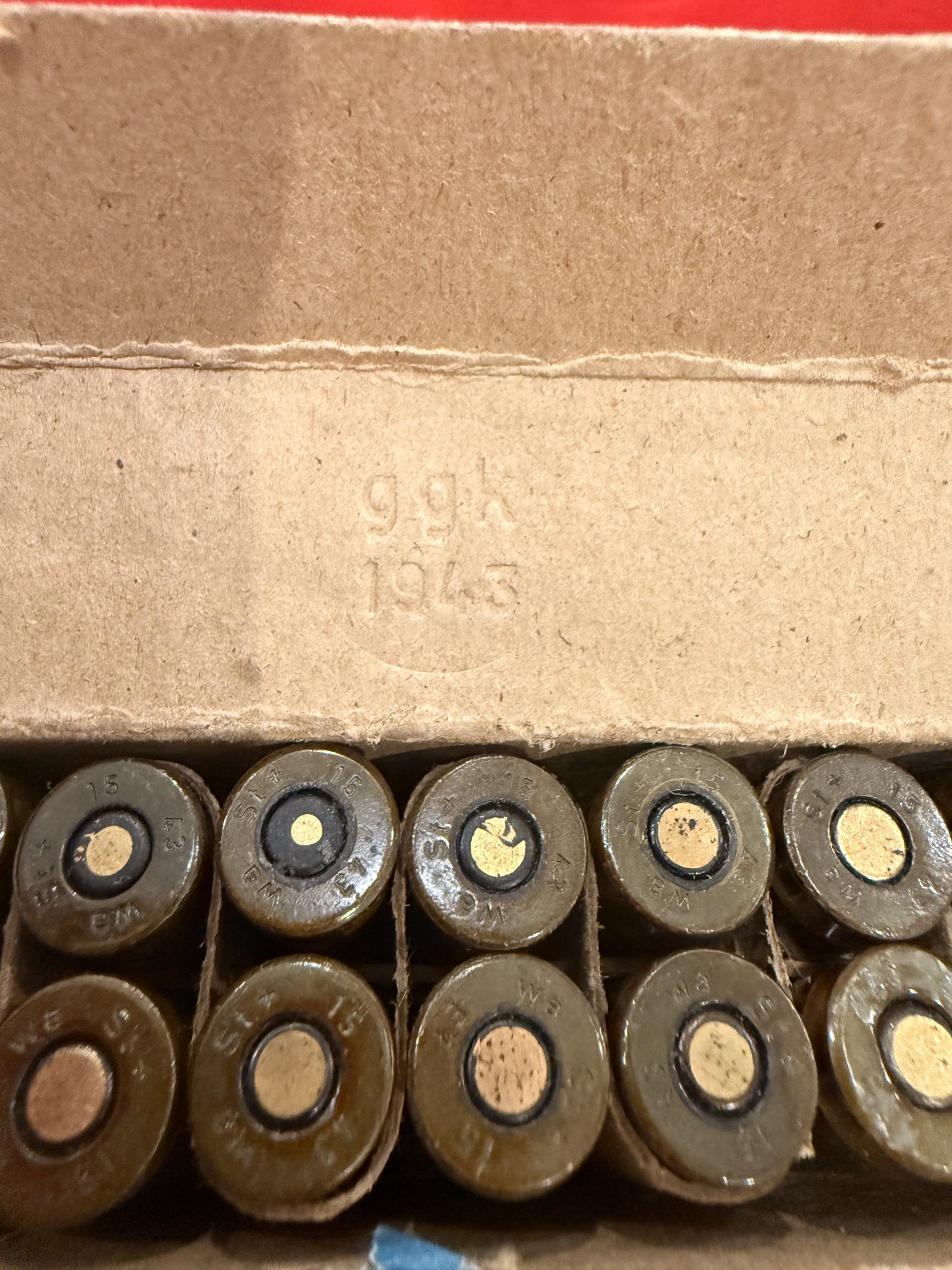 THURS APRIL 30, ORIGINAL WW2 1943 DATED GERMAN 9MM LUGER AMMO