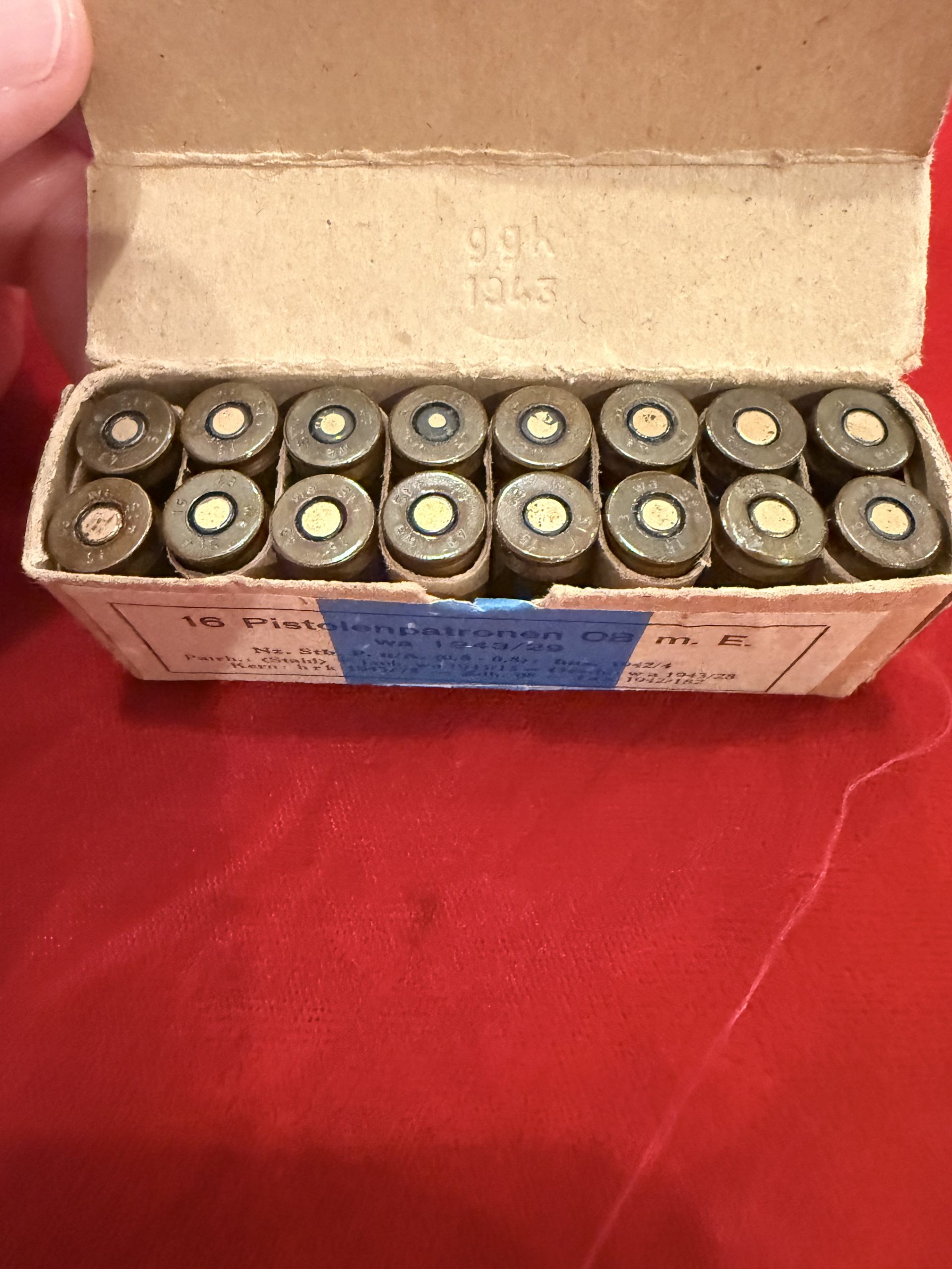 THURS APRIL 30, ORIGINAL WW2 ERA 1943 DATED GERMAN 9MM LUGER AMMO