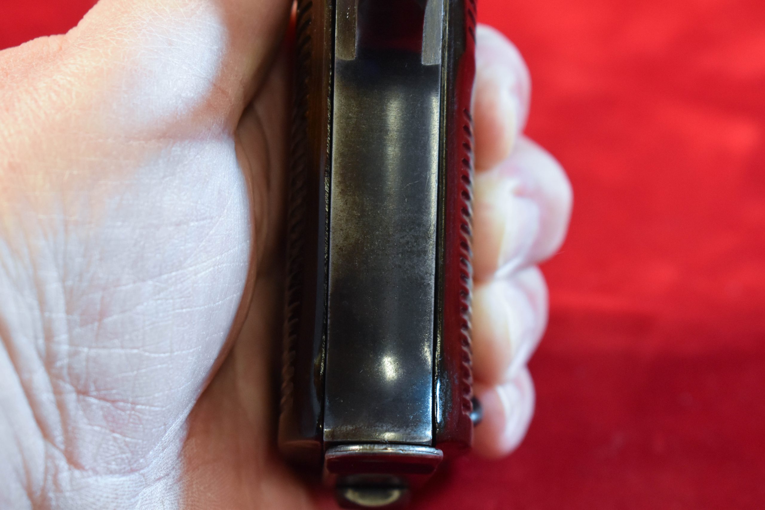 The Heeres Pistole was the commercial variant of the Military P.38 Pistol and was intended for private purchase for the select few Nazis that were allowed to privately own pistols. The high polish blued finish seen on these pistols is the exact same finish applied to the PP & PPK pistols. On such a large pistol the look is quite luxurious. This is a prime piece for the advanced Walther & P.38 collector.