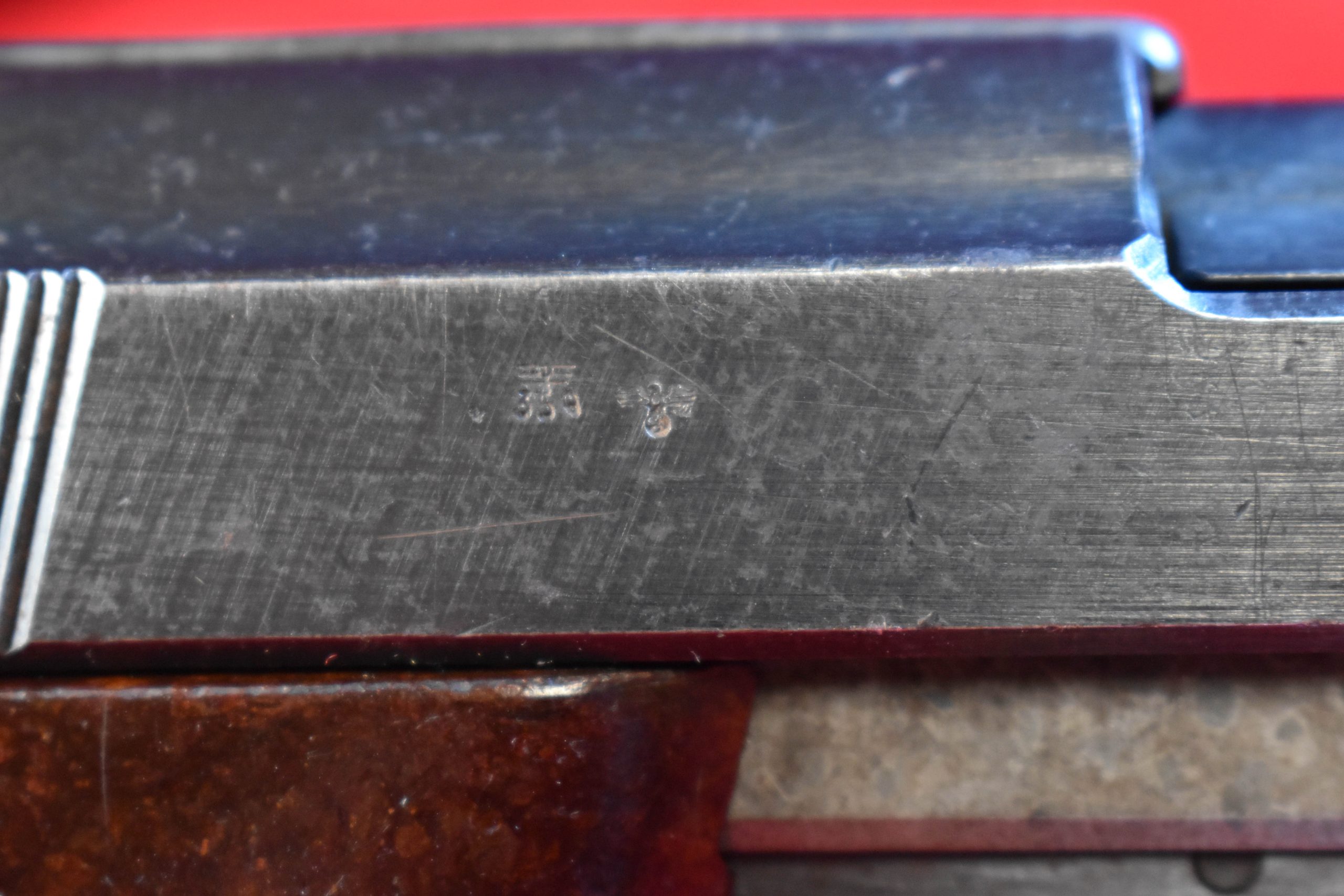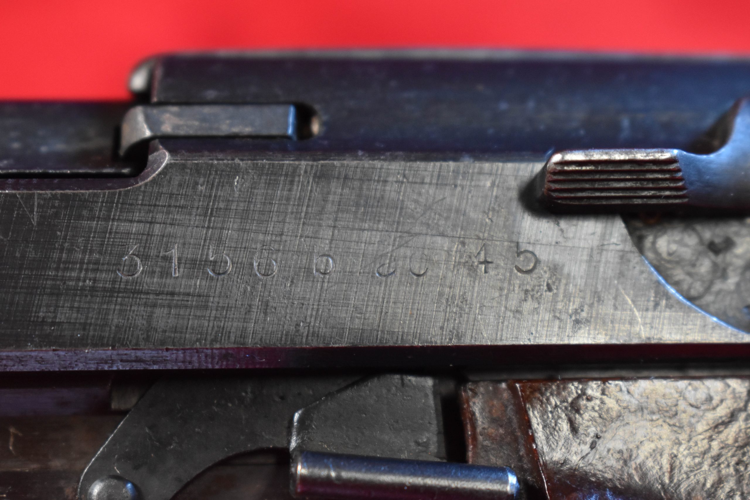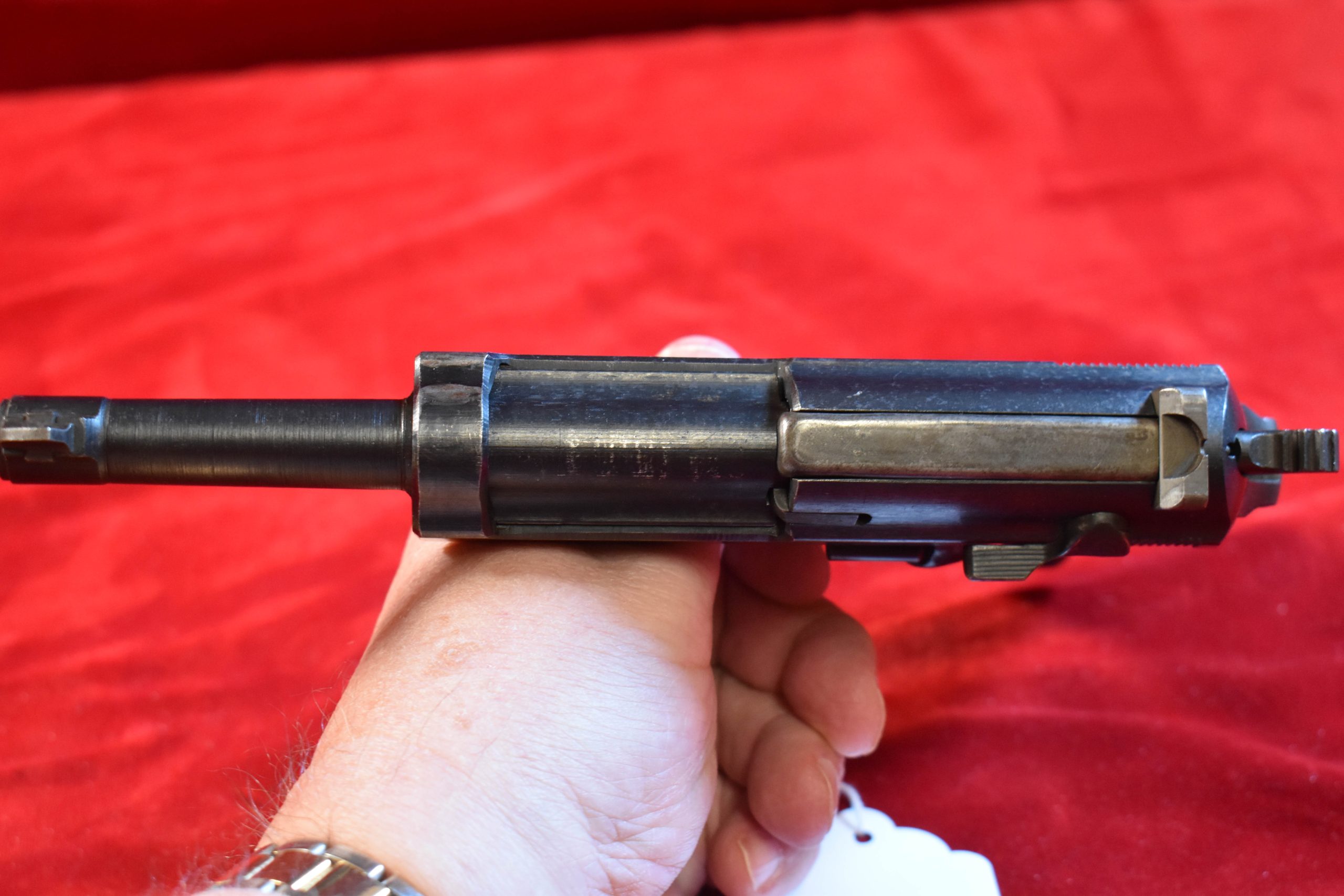 In 95% decent condition, we have an extremely rare, very late/end of war Walther ac45 P.38 from the ‘B” production block that is all matching and with a sub contractor made fnh coded barrel. the bore is mint as well. This is from the b block and it has mixed blued and phosphate parts. Just a top example of end of the war Walther production.