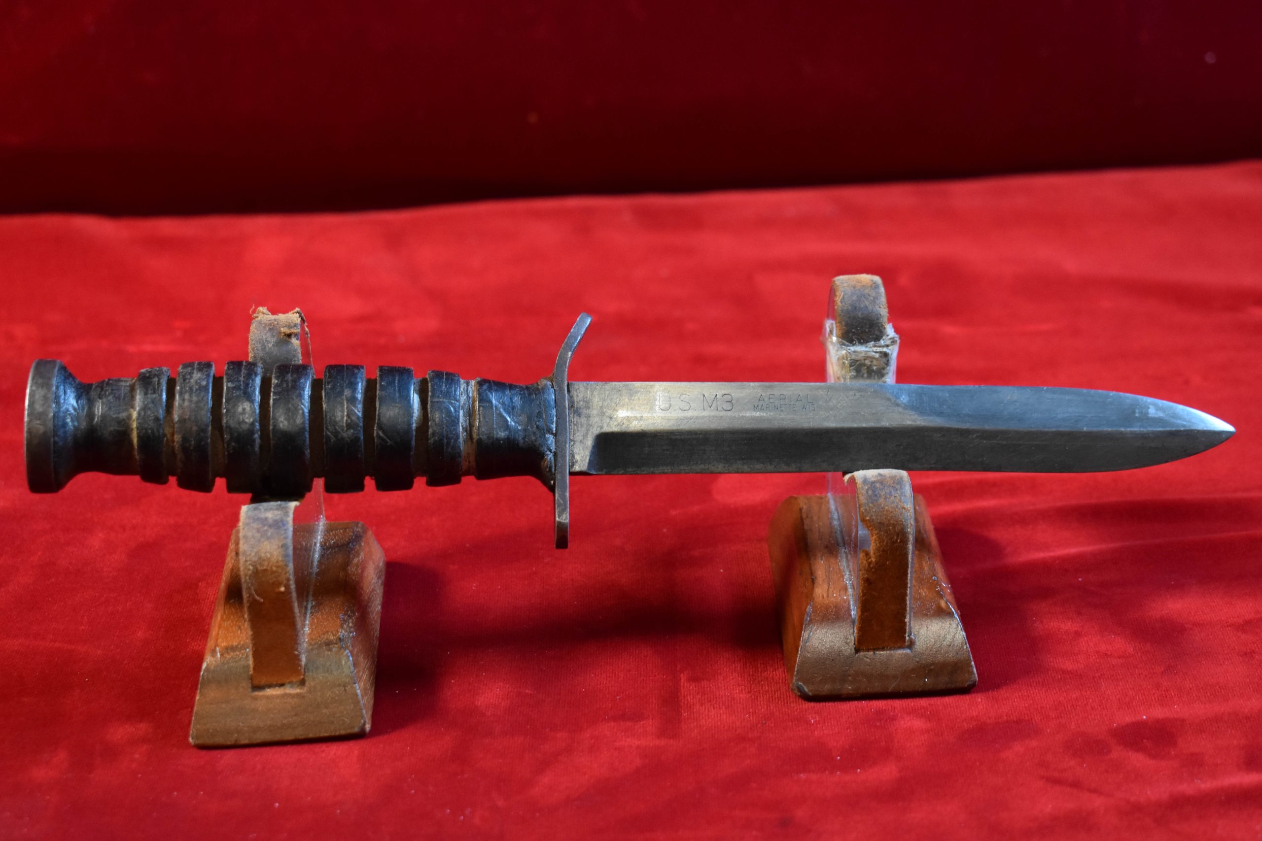TUE DEC 9, US WWII VERY RARE AERIAL BLADE MARKED, M3 FIGHTING KNIFE & M8 SCABBARD,