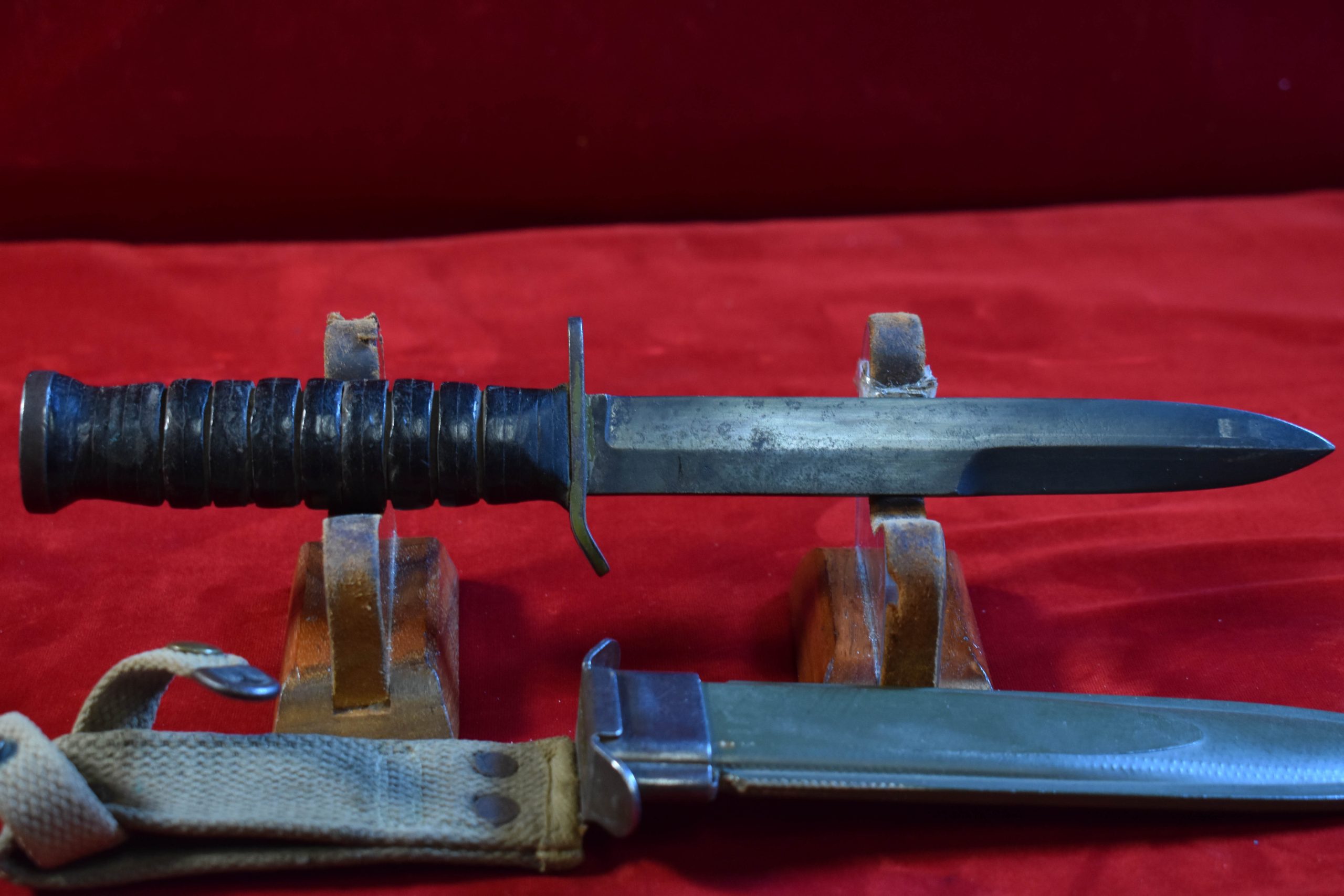 WED DEC 10, US WWII VERY RARE CASE 1943 BLADE MARKED, M3 FIGHTING KNIFE & M8 SCABBARD,