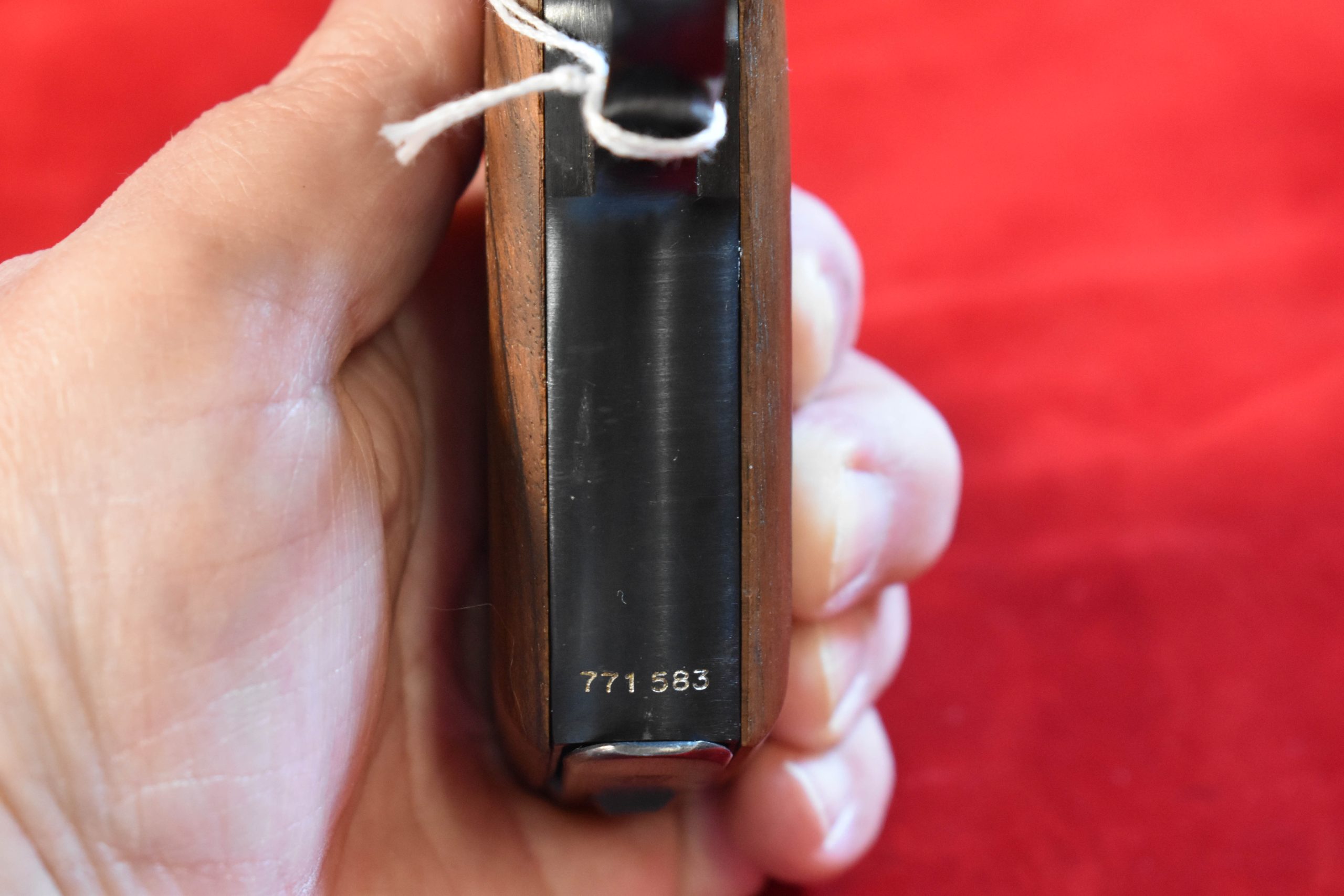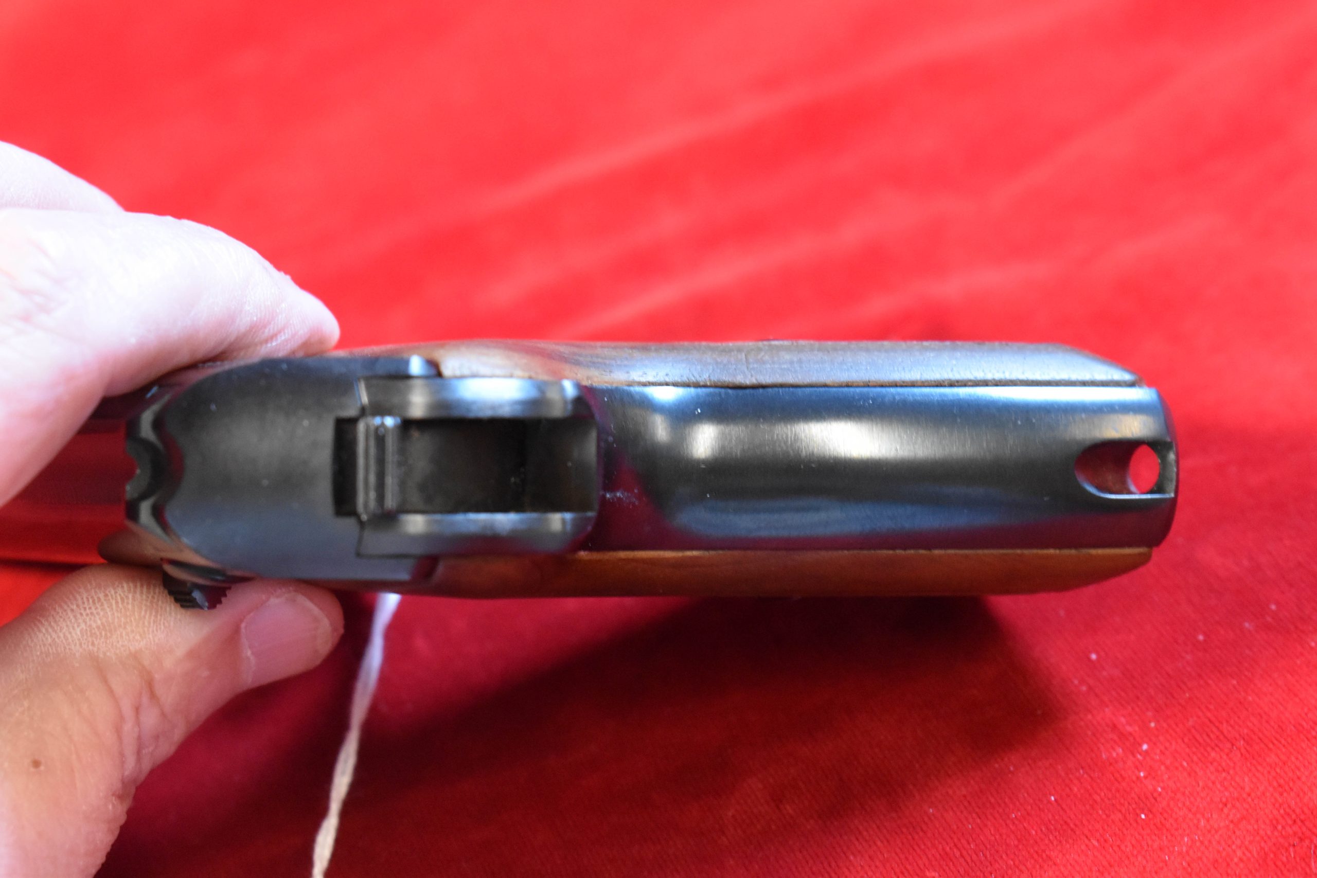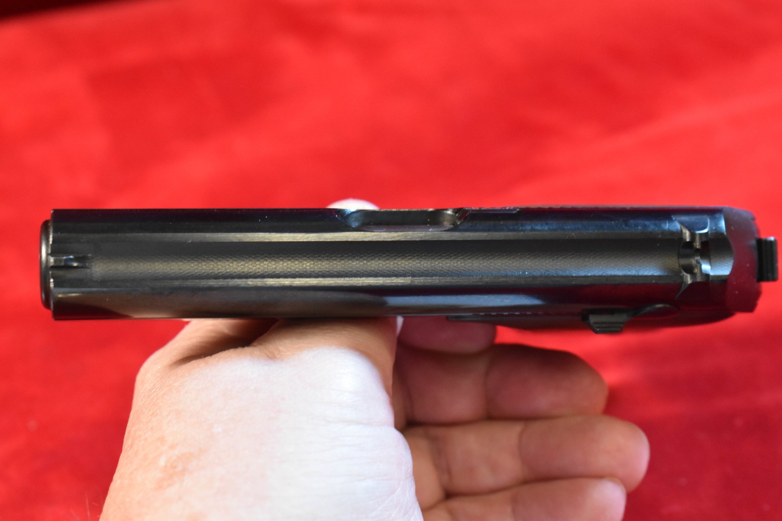 In 99% mint new stunning gem-like conditionwe have an exceptional example of an early war, 1941 production Nazi Police Eagle/L marked Mauser HSc Pistol.  This is all matching with a mint bore as well. This is a prime example of the early war high quality commercial finish with early features such as the matted sight channel and the lanyard loop.  The grips are especially nice and are quite beautiful.  THIS PISTOL IS ABOUT AS BEAUTIFUL OF AN HSc AS YOU WILL EVER SEE!