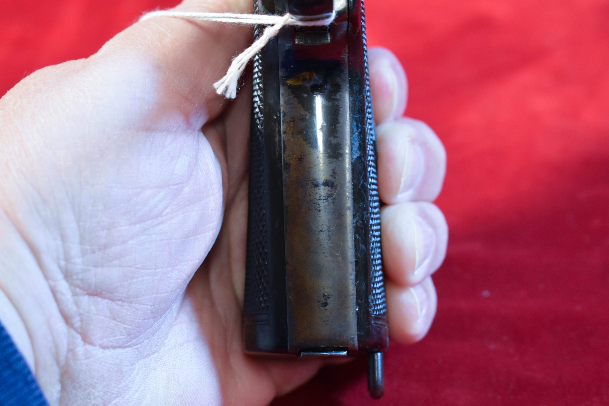 Model 1909 Webley’s are rarely ever seen, probably one comes up for sale only every year or so. The last one that we handled was 5 years ago. This is a rare chance to own one of these very rare and seldom seen Webley Automatic Pistols.