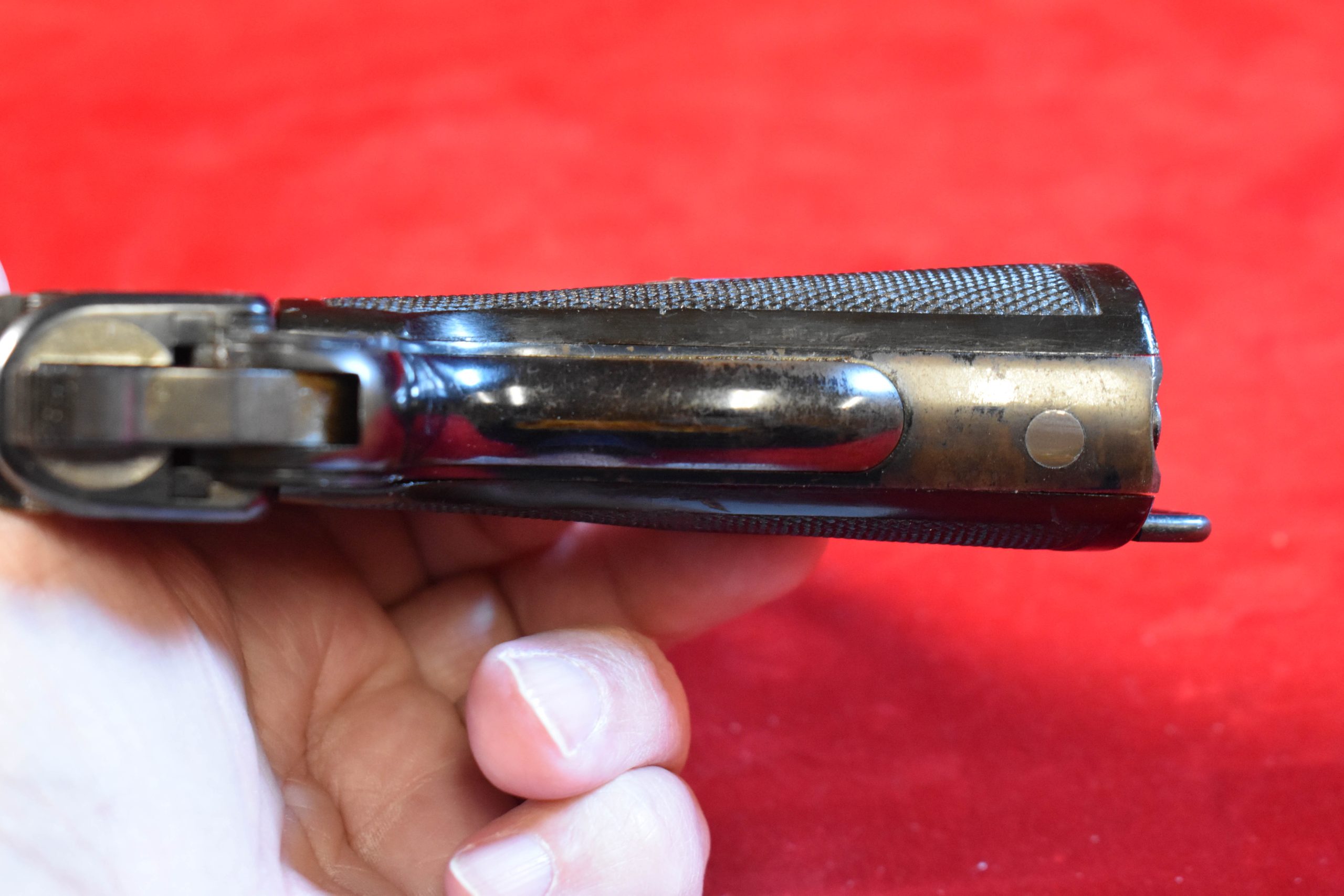 TUE JAN 27, EXTREMELY SCARCE 1914 PRODCUTION, MODEL 1909 WEBLEY AUTOMATIC PISTOL, 9mm BROWNING LONG, SHIPPED TO BELGIUM 2 MONTHS BEFORE WWI, VERY SHARP!