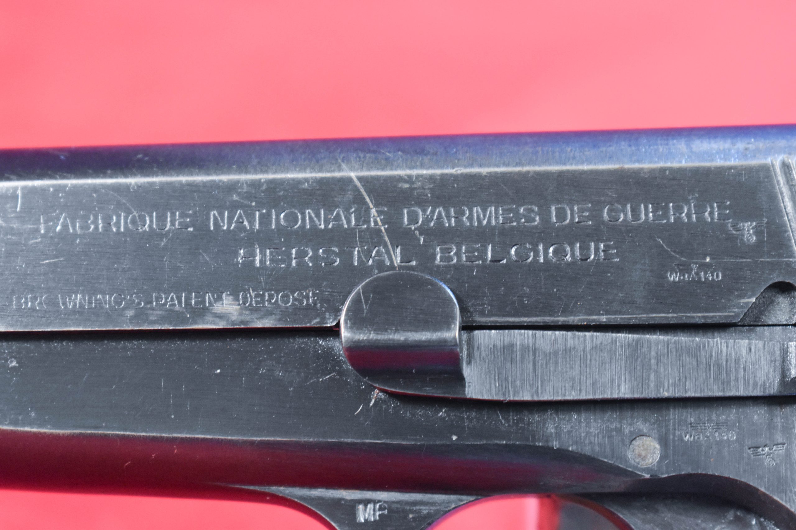 WED DEC 10, VERY CHOICE, NAZI OCCUPATION FN / BROWNING HIGH POWER PISTOL, EARLY PRE-LETTER BLOCK FIXED SIGHT VARIANT, EARLY 1943 PROUDCTION, VERY CRISP!