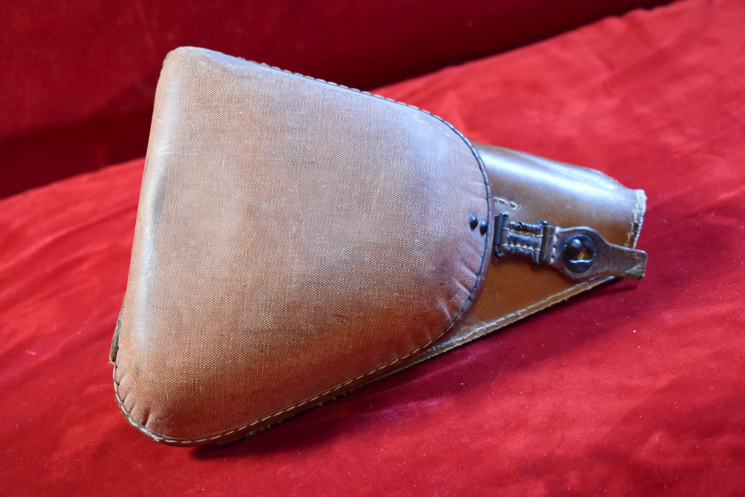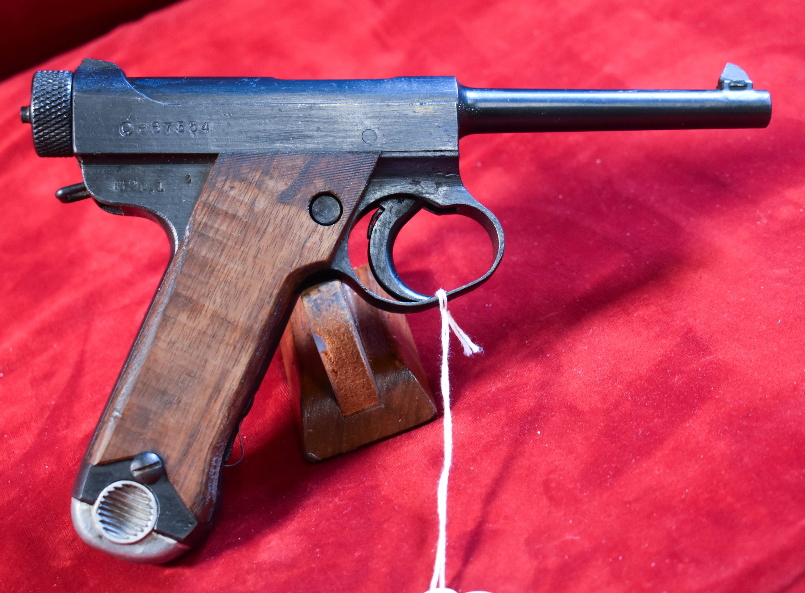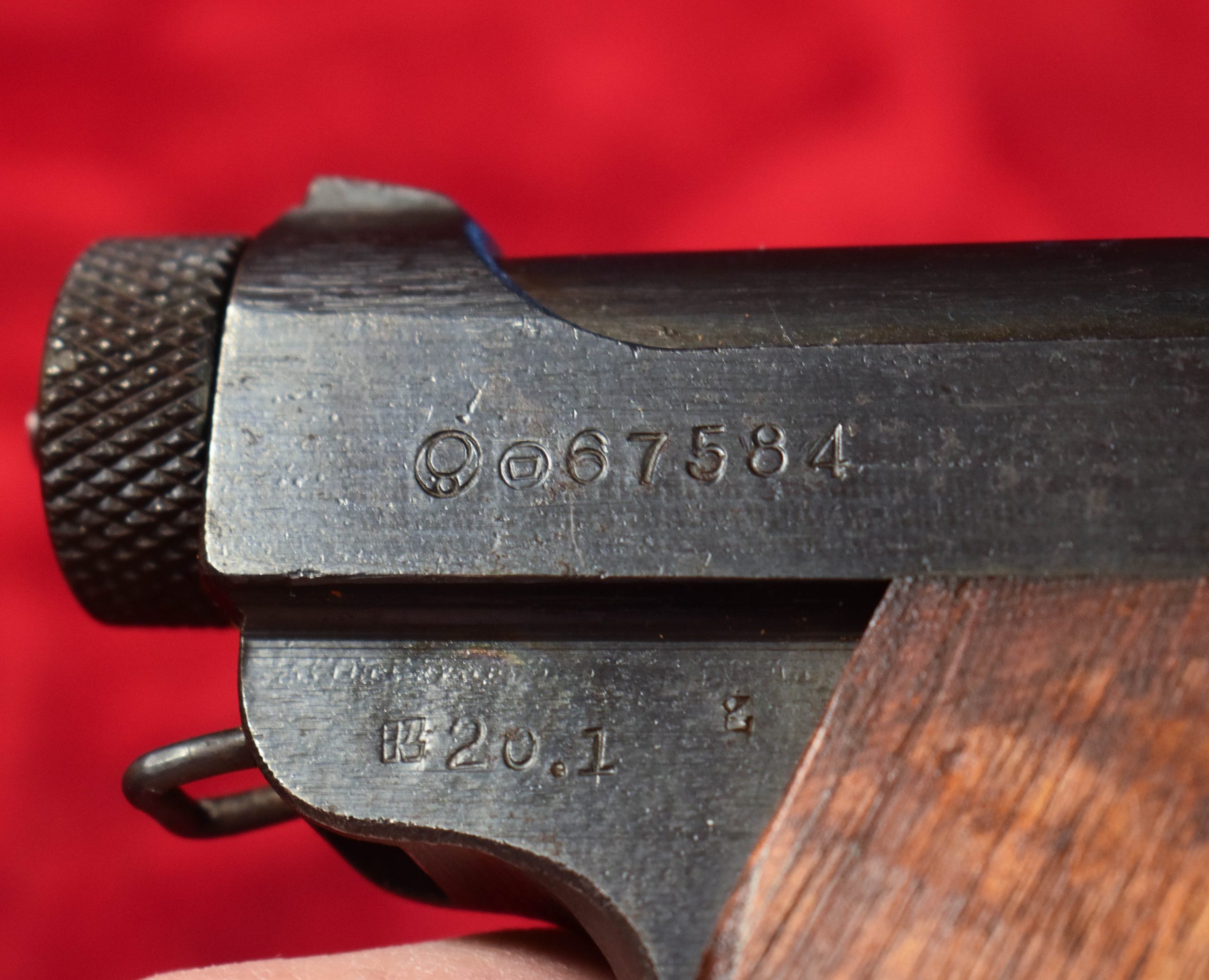In 98% late war rough condition we have a nearly impossible to find January 1945 production Type 14 Nambu pistol with both of the Factory original matching numbered magazines, and incredibly still with both matching numbered firing pins!!! and nice rubberized canvas holster and cleaning rod too. This pistol was made just 7 months before the end of the war, and it has the late features such as the slab sided grips. It also comes with a nice canvas holster as well. Very late date type 14 pistols such as this are extremely desirable to Japanese collectors and to find one that still has both of the original magazines and bot the primary and spare firing pins matching and intact is a significant score. WE HAVE NEVER SEEN A TYPE 14 THAT STILL HAS THE MATCHING SPARE FIRING PIN!