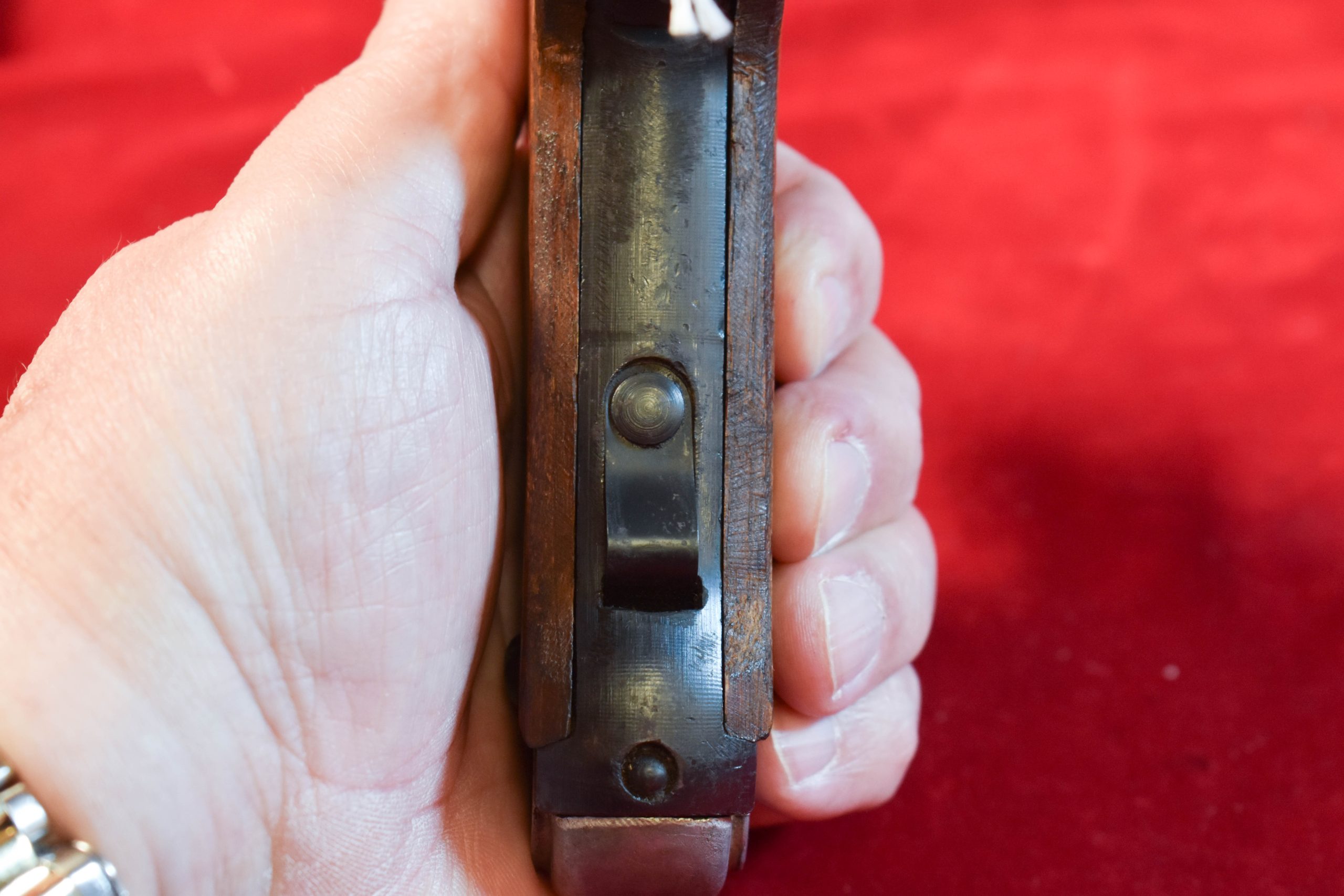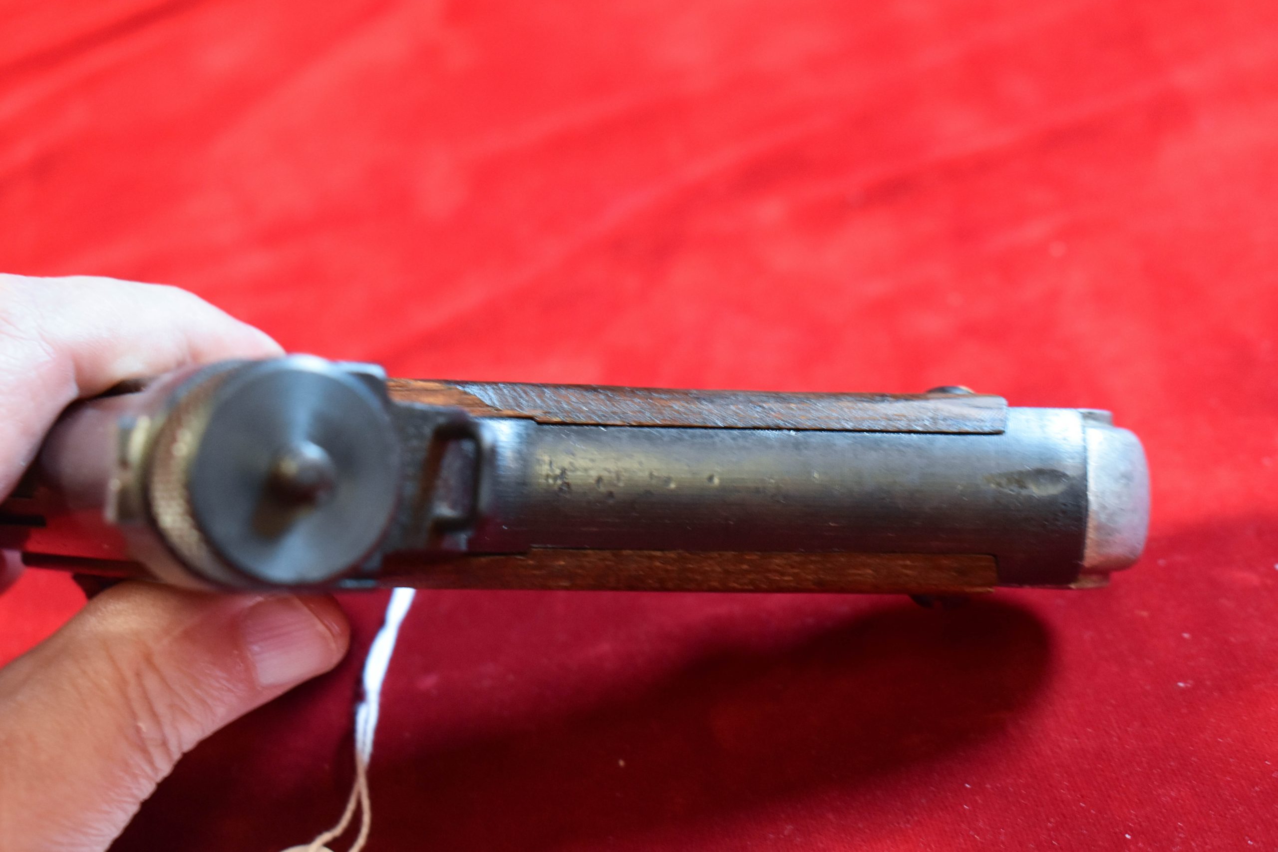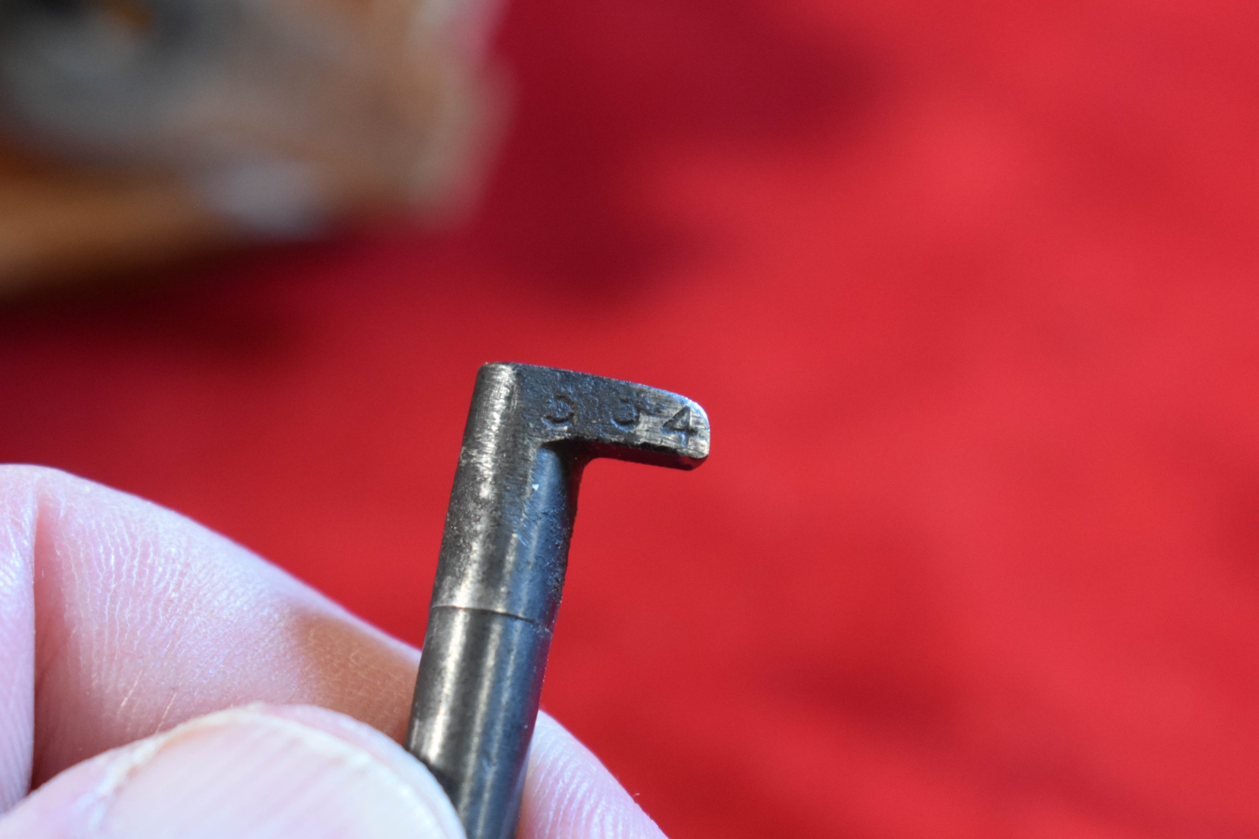 In 98% late war rough condition we have a nearly impossible to find January 1945 production Type 14 Nambu pistol with both of the Factory original matching numbered magazines, and incredibly still with both matching numbered firing pins!!! and nice rubberized canvas holster and cleaning rod too. This pistol was made just 7 months before the end of the war, and it has the late features such as the slab sided grips. It also comes with a nice canvas holster as well. Very late date type 14 pistols such as this are extremely desirable to Japanese collectors and to find one that still has both of the original magazines and bot the primary and spare firing pins matching and intact is a significant score. WE HAVE NEVER SEEN A TYPE 14 THAT STILL HAS THE MATCHING SPARE FIRING PIN!