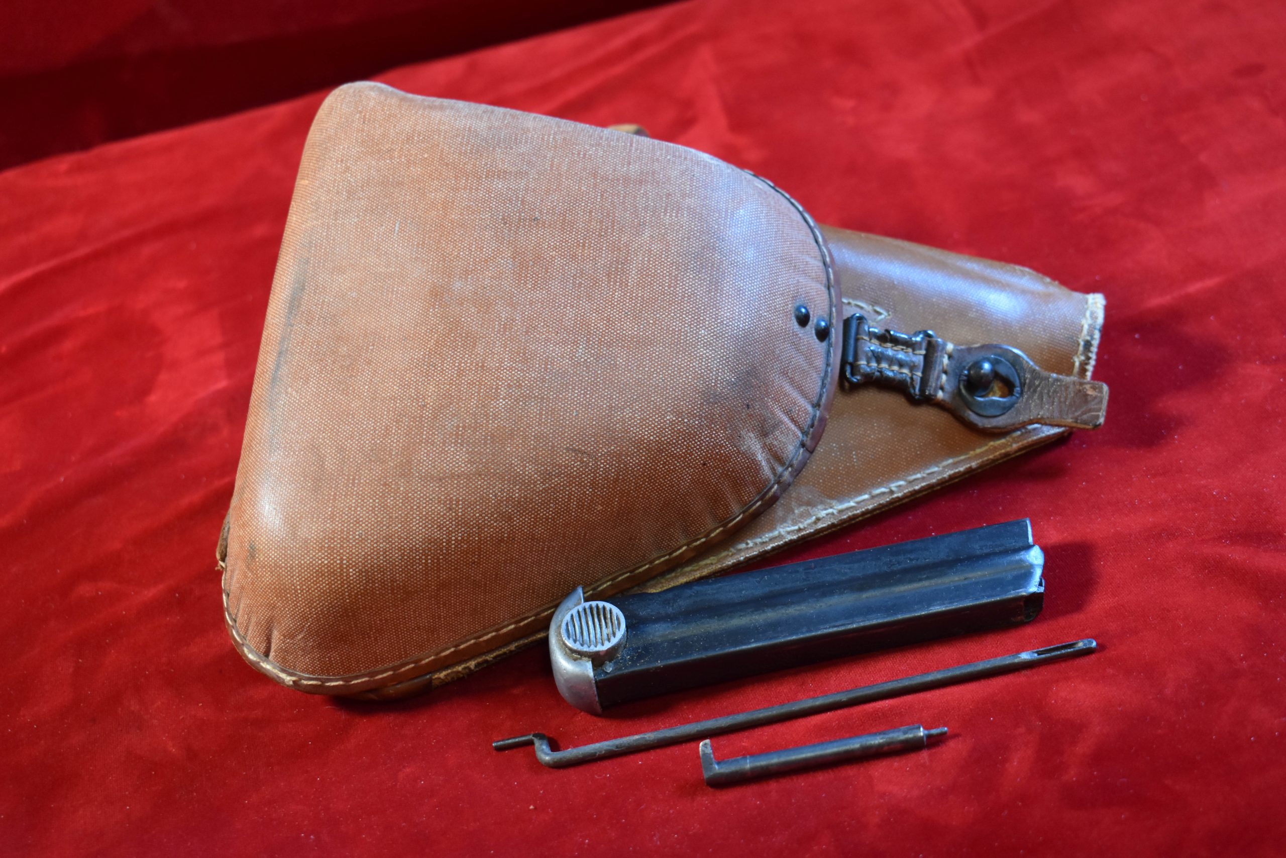 WED DEC 31, OUTSTANDING LATE WAR 20.1 date (JAN, 1945) JAPANESE TYPE 14 NAMBU PISTOL, FULL 2 MATCHING MAG RIG, EVEN THE SPARE FIRING PIN IS MATCHING! ALMOST UNHEARD OF!