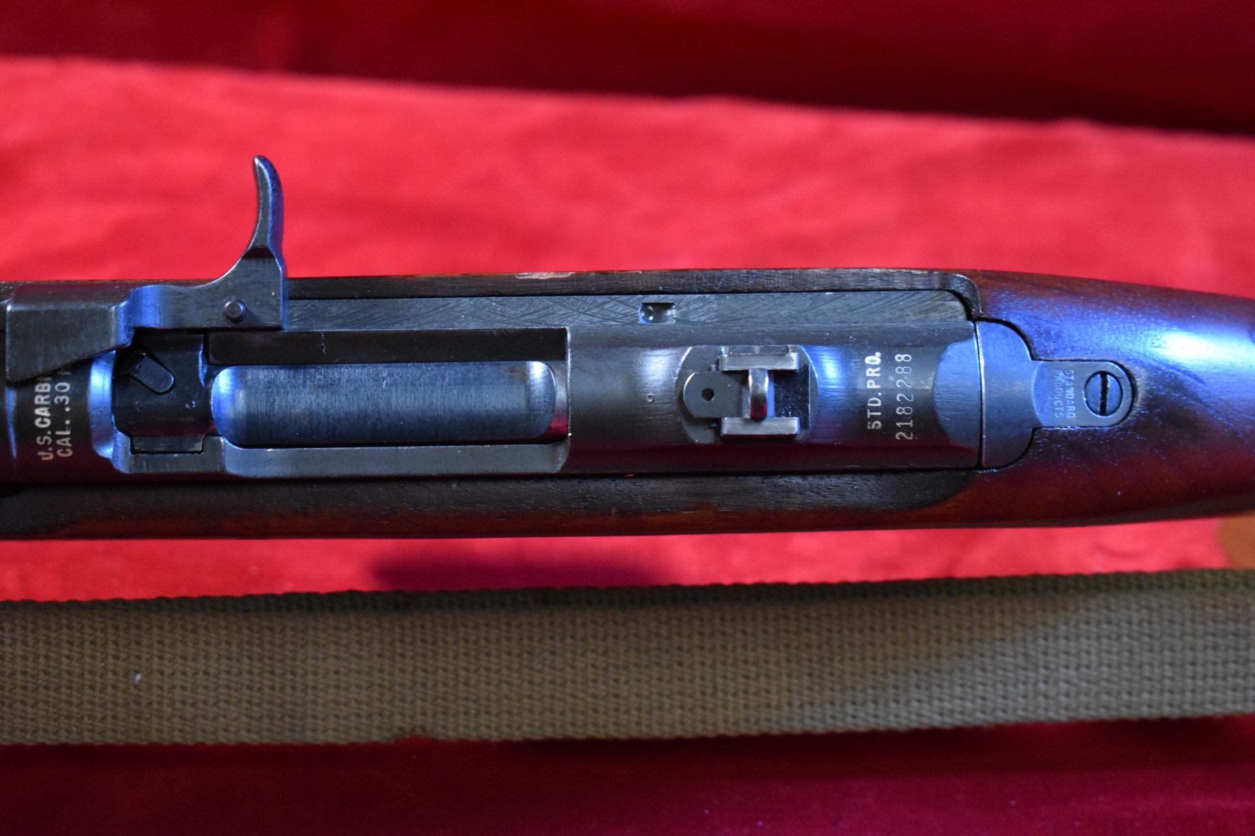 WE HAVE AN EXCELLENT CONDITION EXAMPLE OF A SOMEWHAT RARE MAKER, STANDARD PRODUCTS M1 CARBINE THAT WAS MADE IN JANUARY, 1944 THIS IS ONE OF THE RARER CONTRACTORS AND THEY ARE NOT EASY TO LOCATE. THIS WAS A VET BROUGHT BACK CARBINE AND IS IN VERY SHARP CONDITION, ONE OF THE NEAT THINGS ABOUT THIS RARE CARBINE IS THAT IS HAS A STOCK MADE BY HILLERICH & BRADSBY, THE MAKER OF THE FAMOUS LOUISVILLE SLUGGER BASEBALL BATS. THIS IS A GREAT COLLECTOR GRADE EXAMPLE OF A RARE CONTRACTOR CARBINE. THESE CARBINES WERE MADE IN PORT CLINTON, OHIO